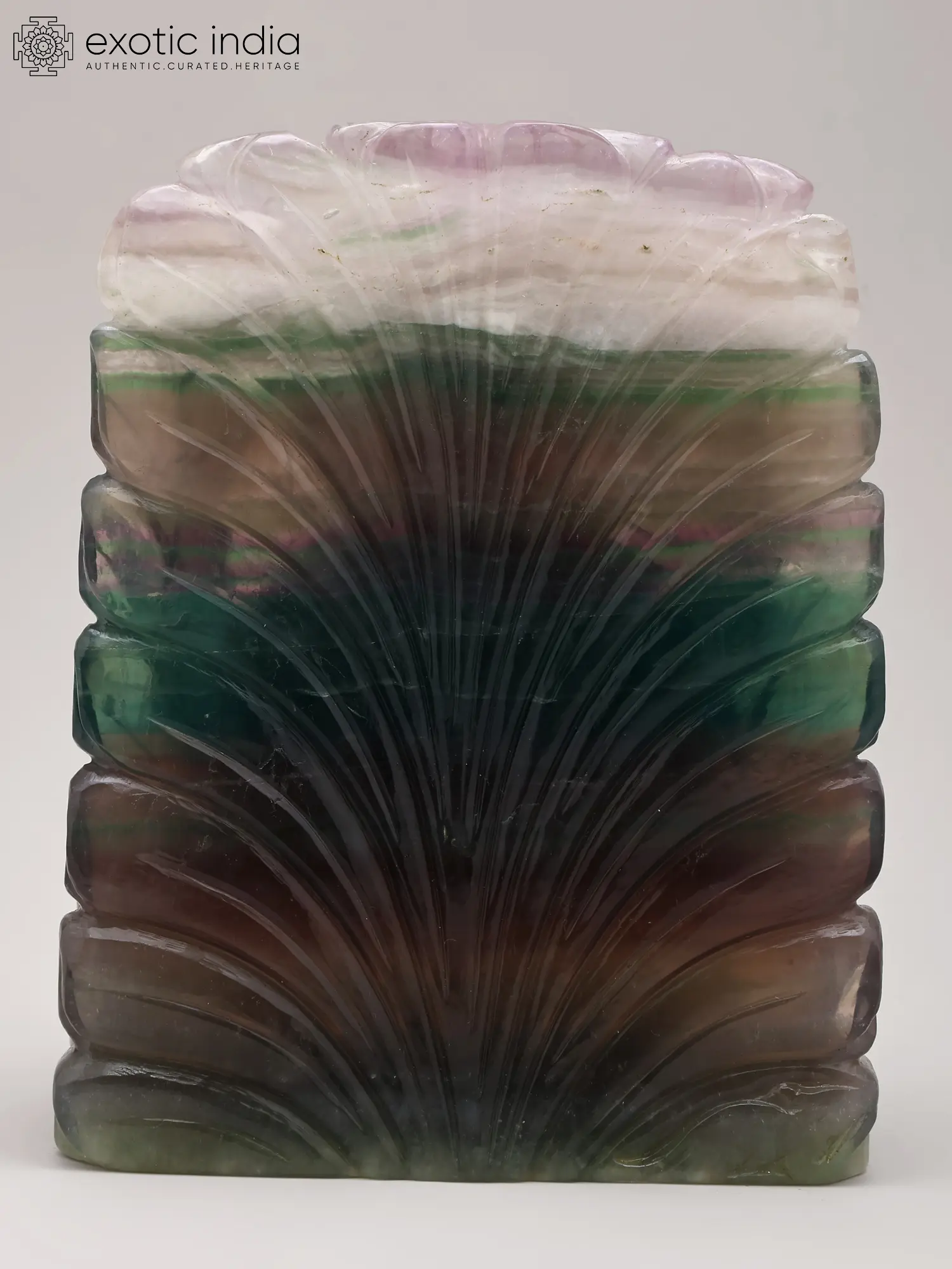 Crafted from natural, multi-colored fluorite, showcasing unique translucent and vibrant hues.
