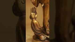 Carved in brass, this modern Ganesha feels alive and still all at once- more deity than sculpture. His softly sculpted elephant face, with eyes half-closed in meditative calm, draws you inward even as the metal’s subtle gleam seems to pulse with inner light.