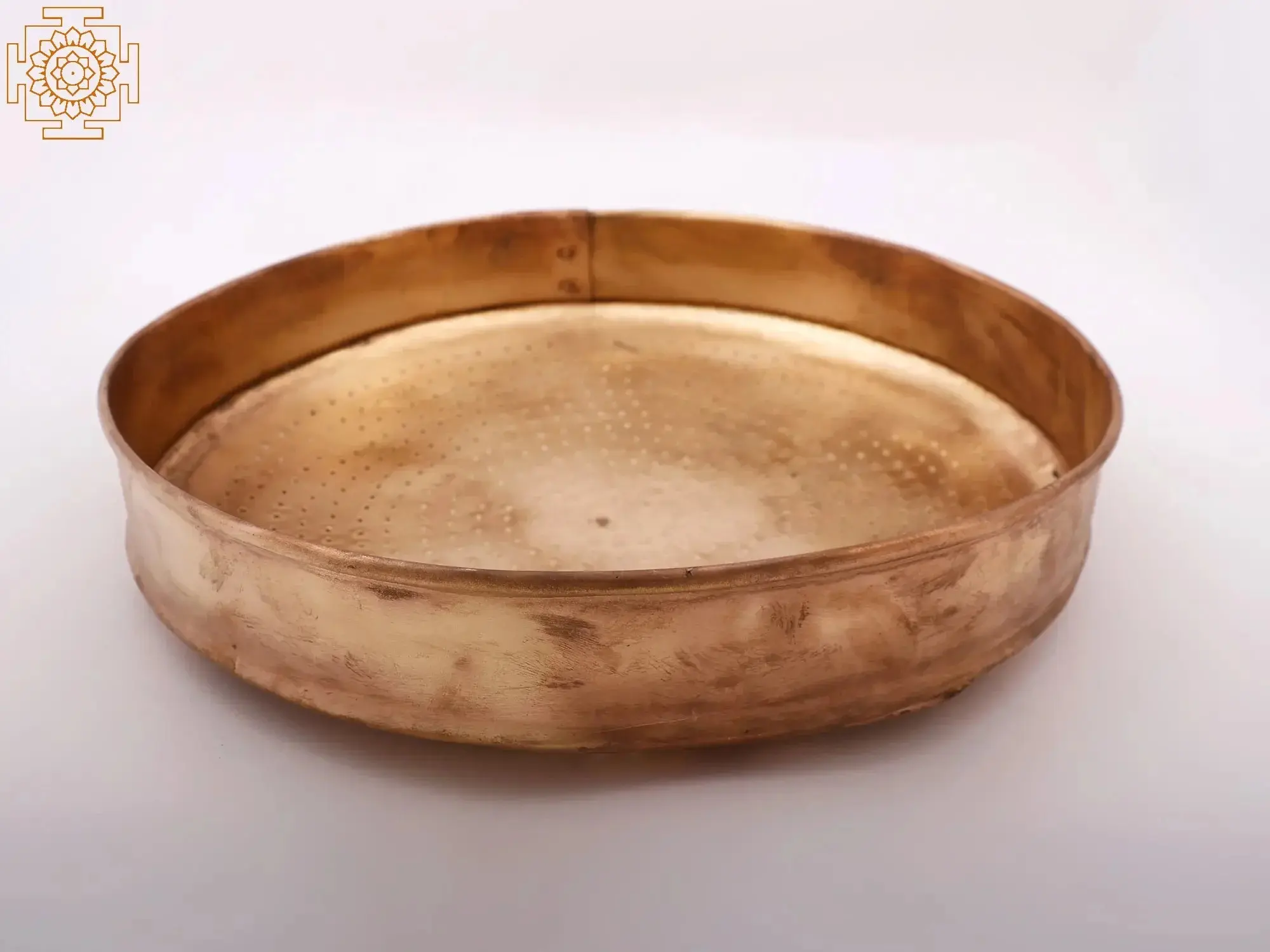 Partake in sacred rituals with our Sahastradhara Abhisheka Plate, a sieve designed for ceremonial use. The intricate design and craftsmanship make this plate a symbol of purity and reverence. The thousand streams (Sahastradhara) depicted in the design represent the divine flow of blessings. Use this abhisheka plate during rituals to enhance the sacred ambiance, symbolising the spiritual connection between the worshipper and the divine. Let this plate be a conduit for devotion, adding a touch of sanctity to your ceremonial practices.