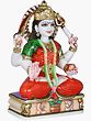 The soothing expression of her eyes decorated with blue eye shadow, gentle smiling lips and the overall divine essence of her personality are some of the salient features of this pure white marble statue.