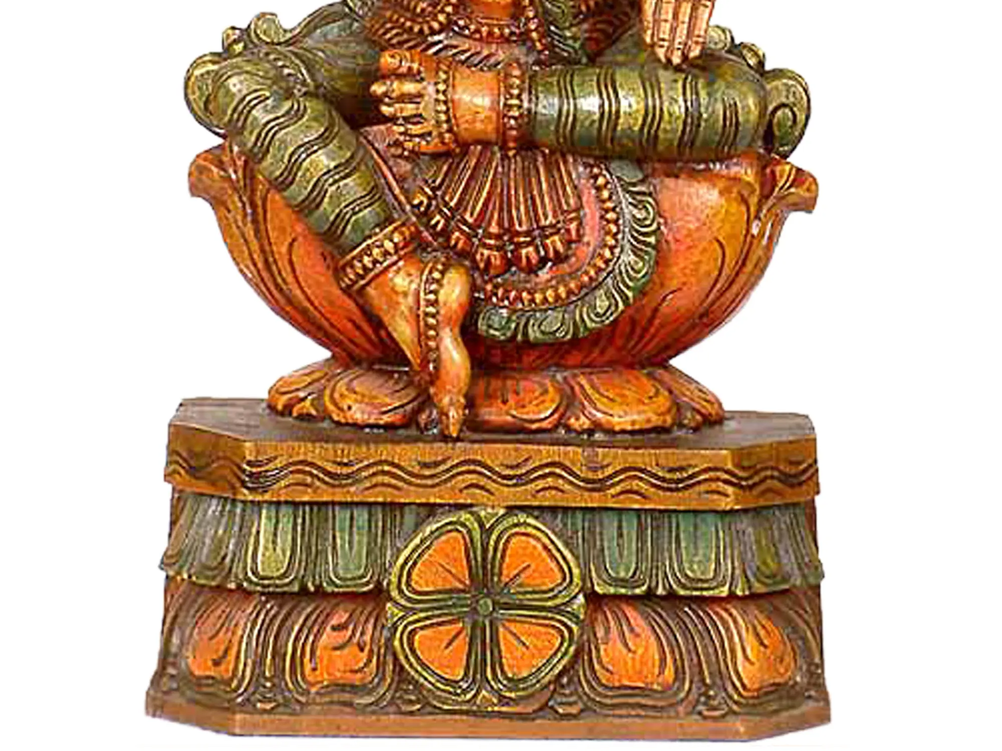 This wooden carving, measuring 23.0 x 12.0 x 4.8 inches, carries a warm, earthy palette, giving it an authentic and time-honored look. It is sure to find a place of honor in your home, office, studio or shrine. The Goddess will bestow her blessings upon your home.