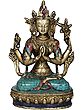 The eternal Bodhisattva, the Bodhisattva of undying compassion. He watches over ihaloka (earthly realm of existence) like a guardian and, as He does so, His head splits into a thousand pieces from grief of the illusions that meet His eye. In His hands He grasps the mystical wish-fulfilling jewel. He is Bodhisattva Chenrezig, the most loved and venerated Bodhisattva in Tibet. The murti that you see on this page depicts Him in His four-armed form. His eyes are shut, His legs gathered in a fine padmasana. As resplendent as His face is the lotus He holds in His left posterior hand.