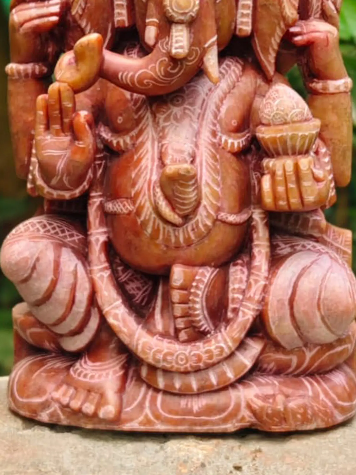 15" Three Headed Lord Brahma | Green Stone Statue | Made In Orissa