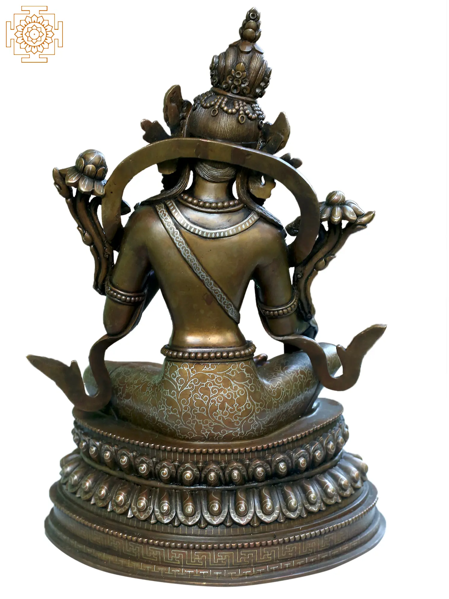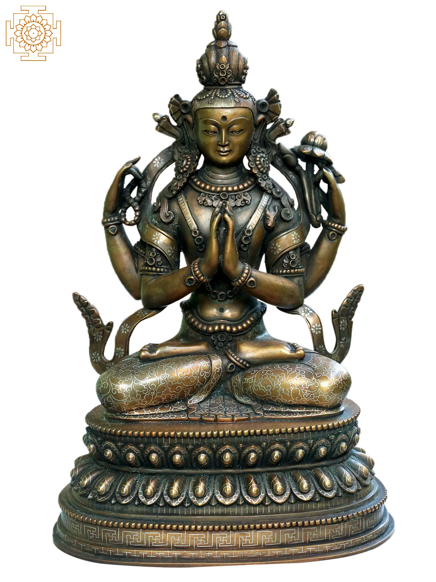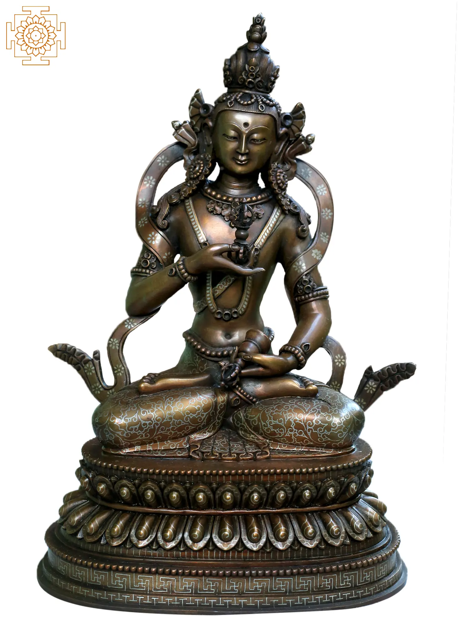 A set of six, superbly carved figurines. Deities of the Buddhist pantheon: (clockwise from the central-frontal murti) Avalokiteshvara with the wish-fulfilling jewel, the beauteous Green Tara, Her twin the lovely White Tara, Aparamita Buddha as the bestower of longevity, Manjushri wielding a sword that cuts through avidya, and Vajrasattva holding up the vajra.