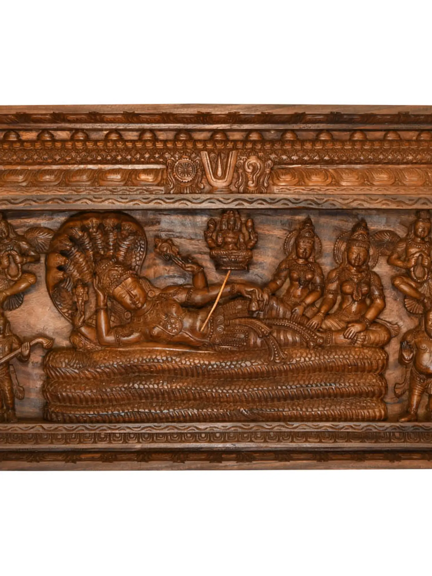 The Divine Slumber of Vishnu: A Masterpiece of South Indian Wood Carving