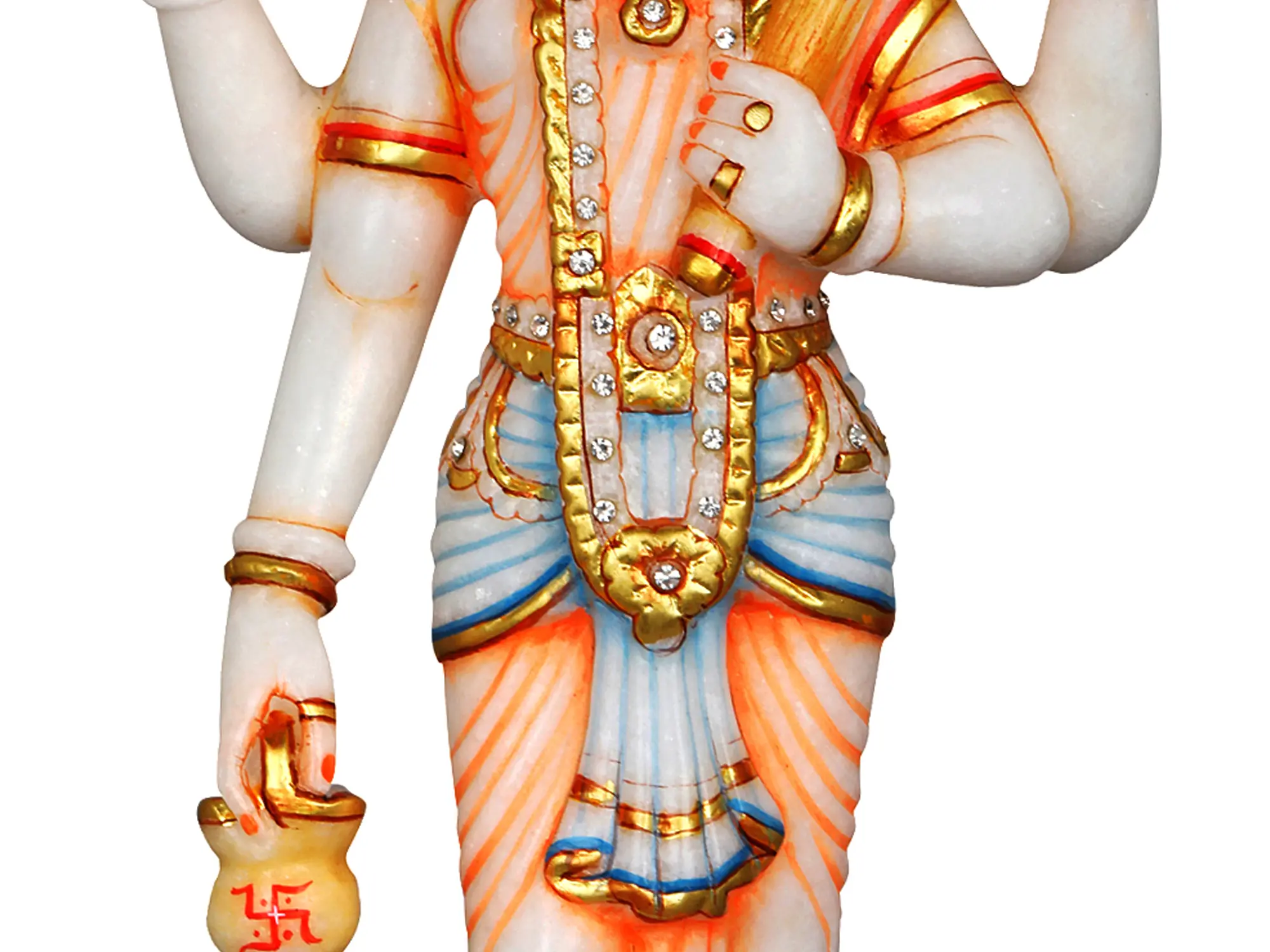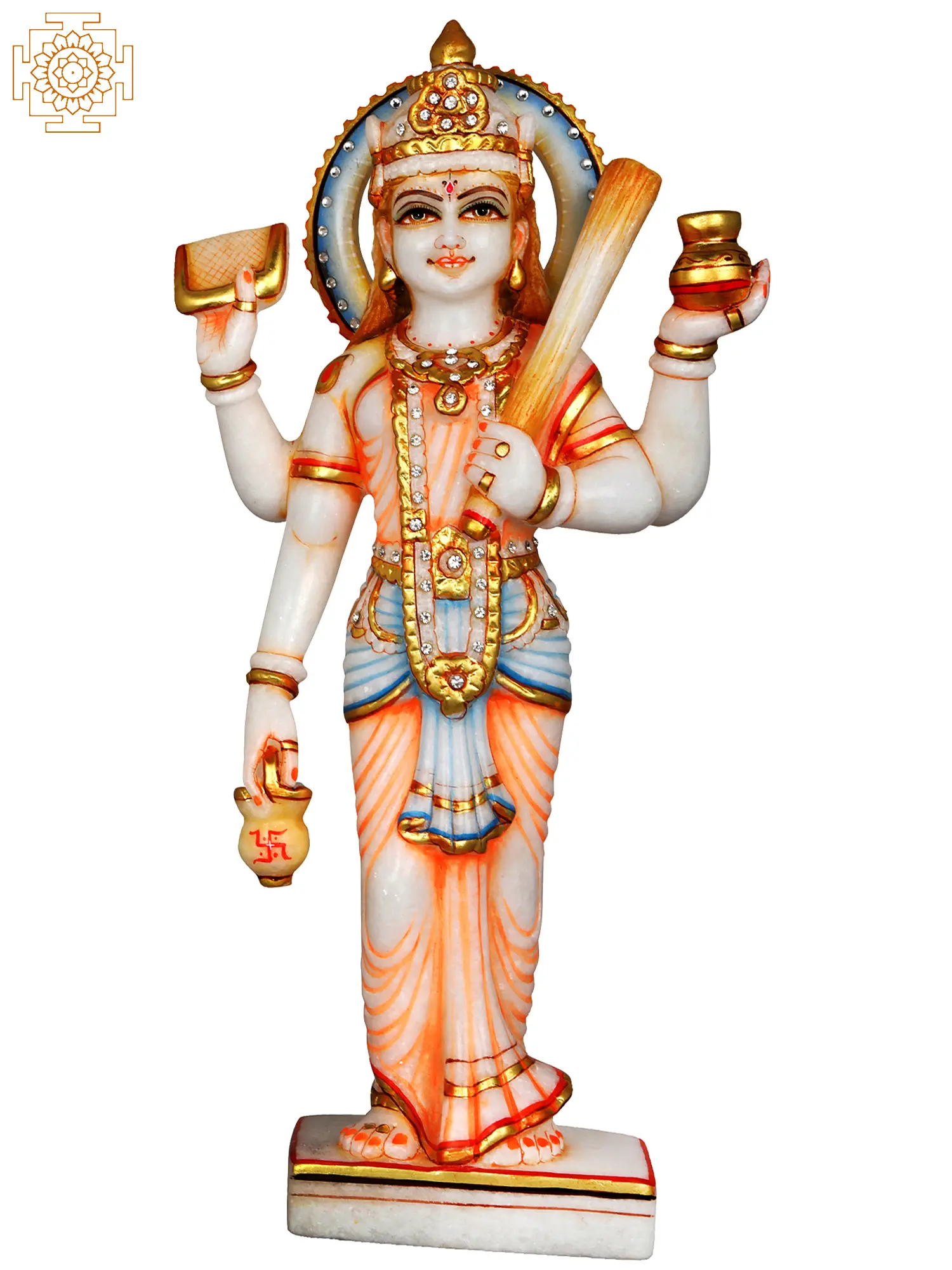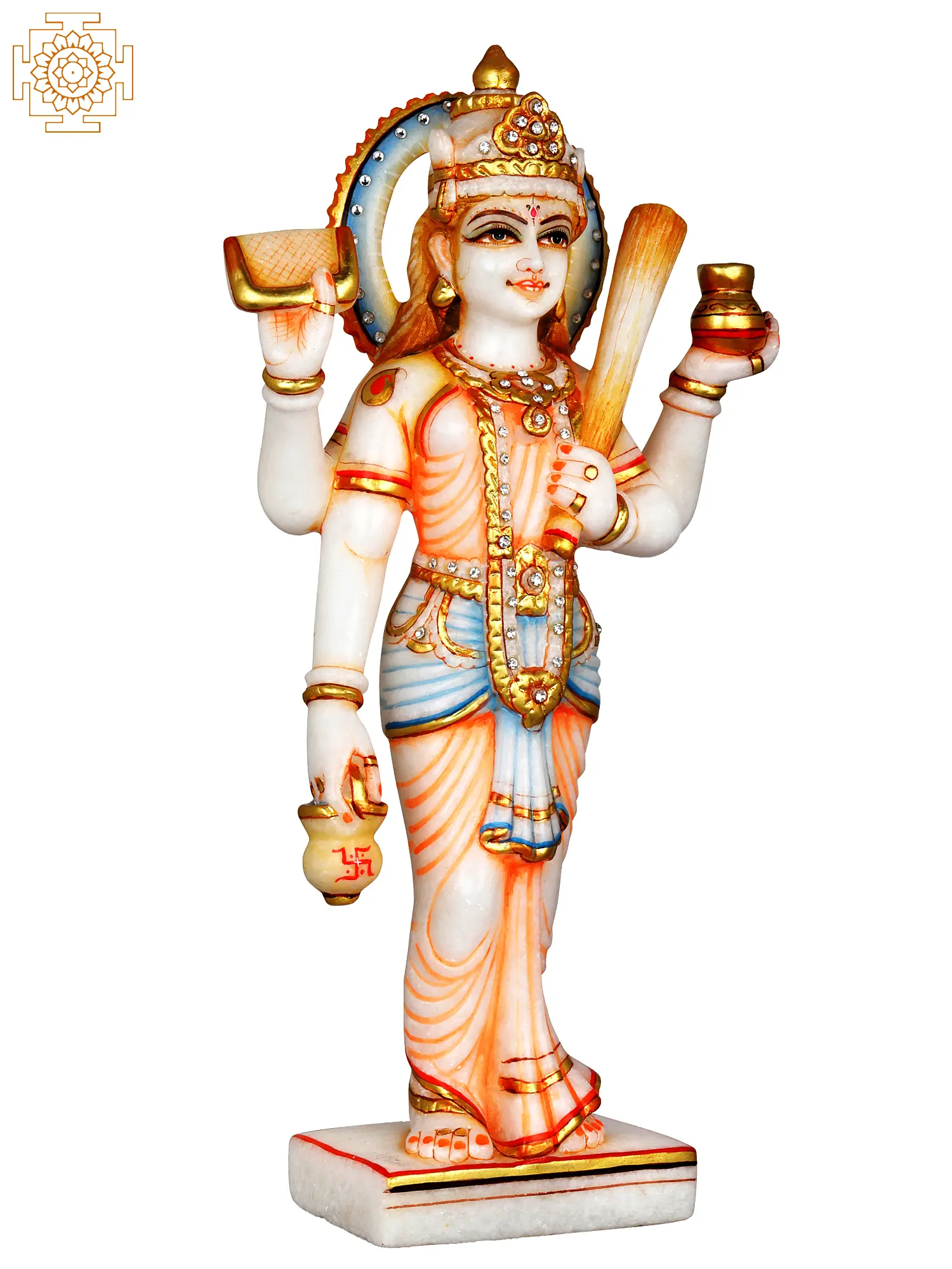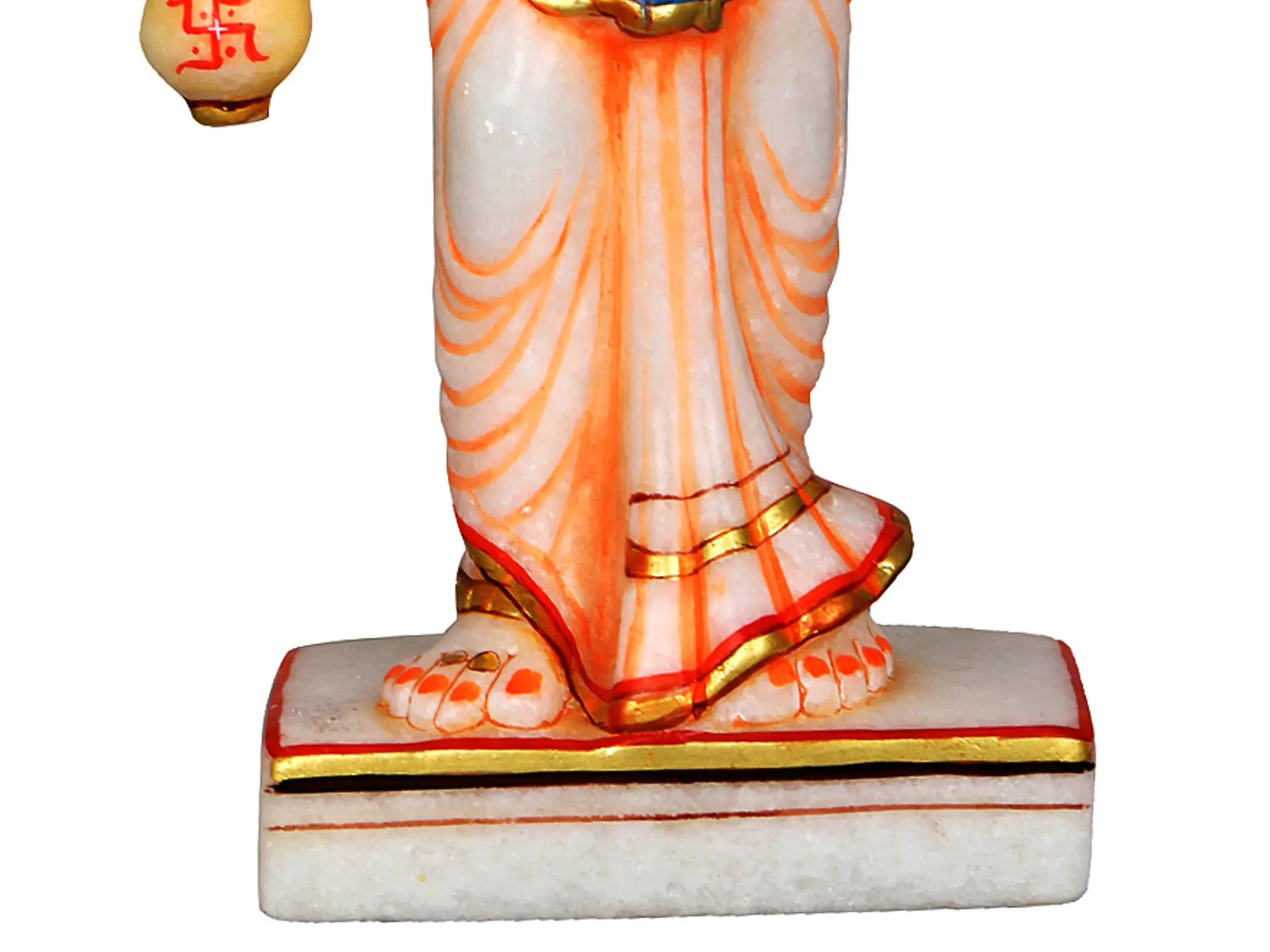 This marble statue is very sharply and creatively made out of a single stone. The white color stone is symbolizing her purity and cleanliness. If kept in any worship place, it definitely will be a great attraction.