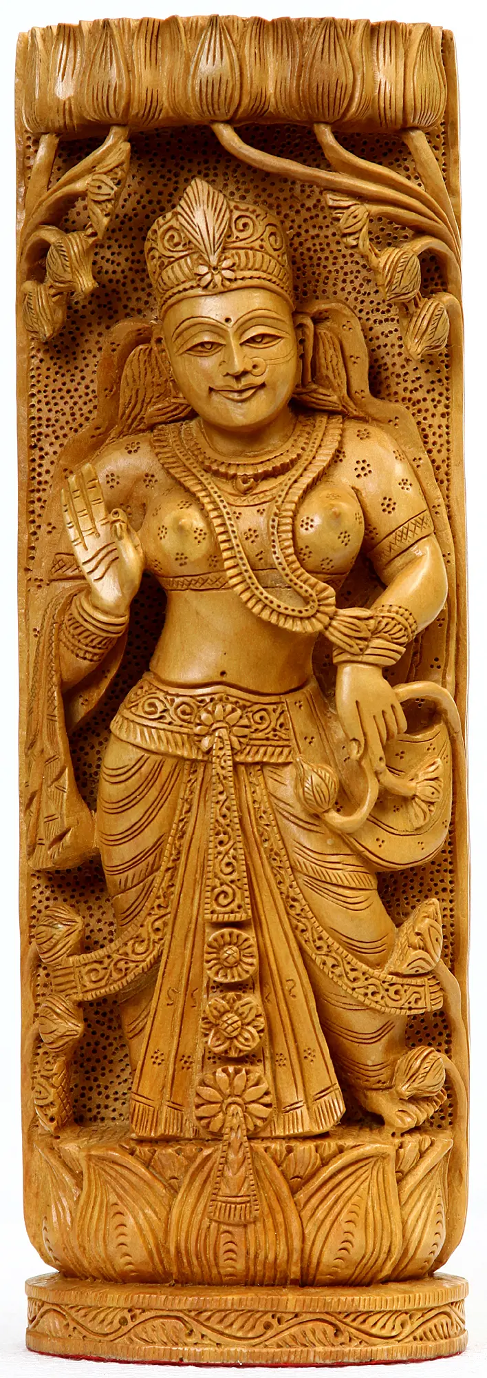 This sculpture originates from Jaipur, a city renowned for its artistic traditions and royal patronage. The artisans of Jaipur are celebrated for their mastery of wood carving, passed down through families for centuries. The use of Kadamba wood, known for its smooth texture and durability, further enhances the statue's aesthetic appeal and longevity. By bringing this handcrafted piece into your home, you are not only adding a touch of elegance and spirituality but also supporting the livelihoods of skilled artisans and preserving a precious cultural heritage. Each curve, each detail, is a testament to the dedication and expertise of the Jaipur craftsmen.