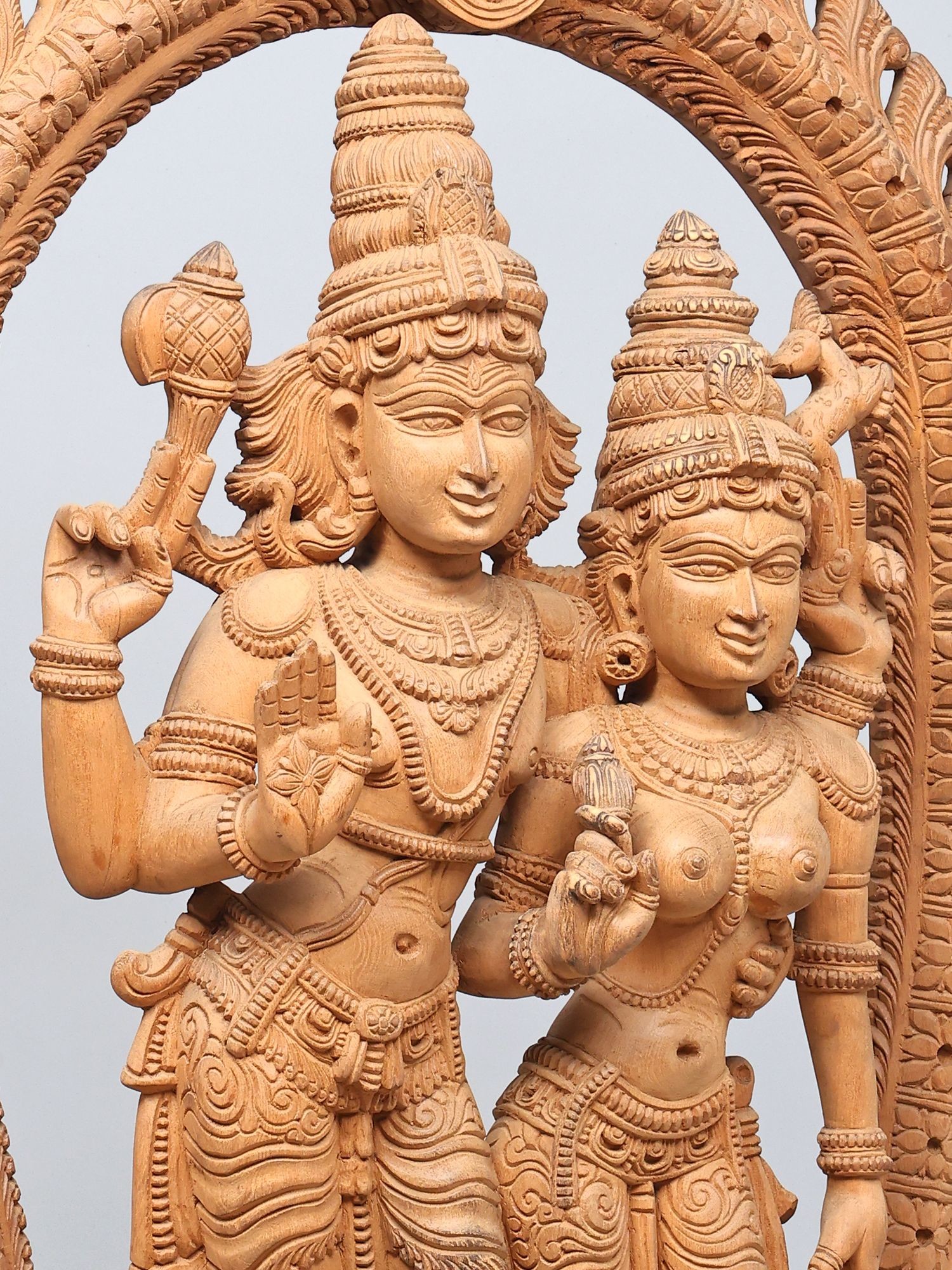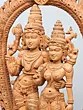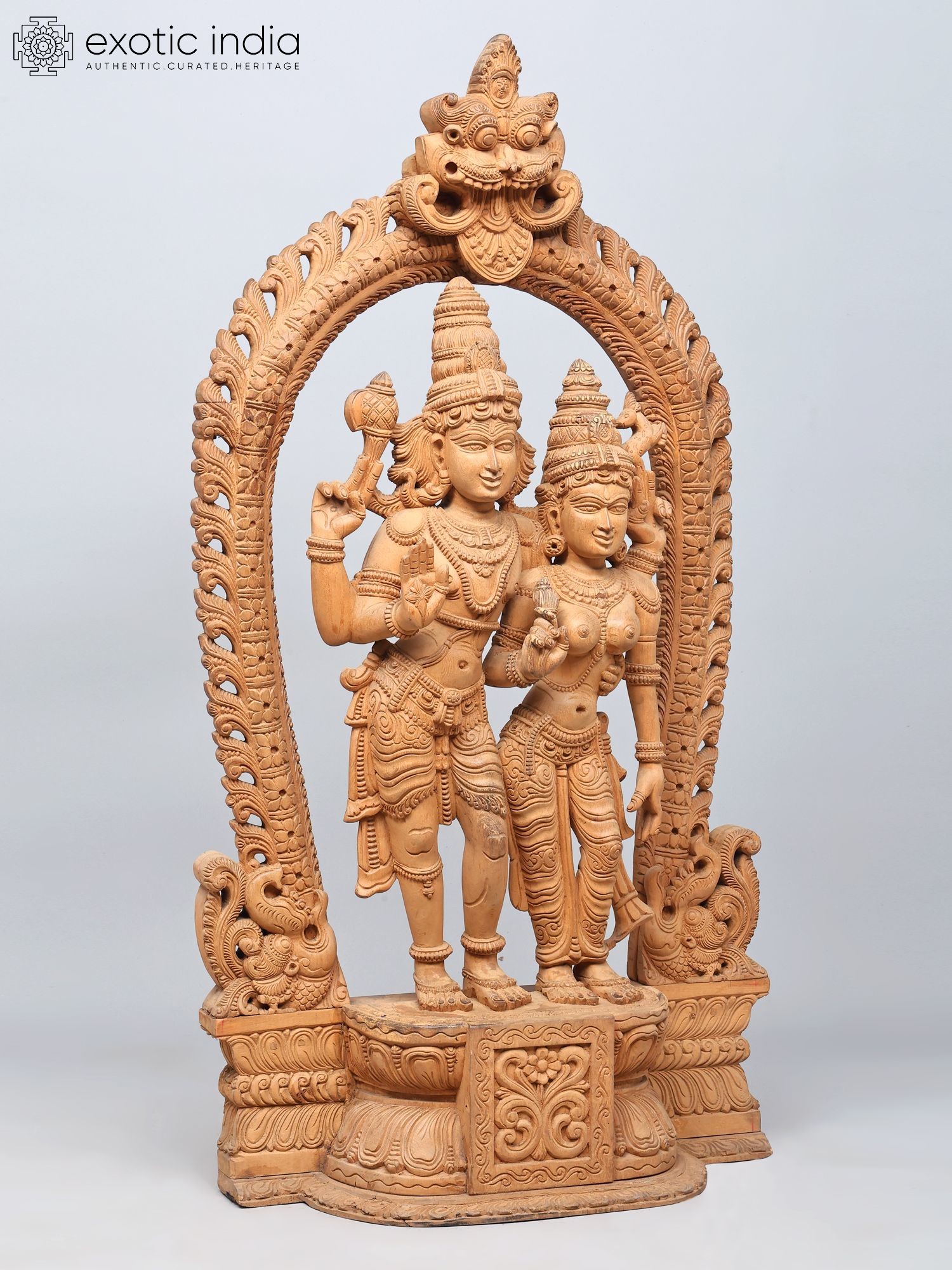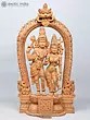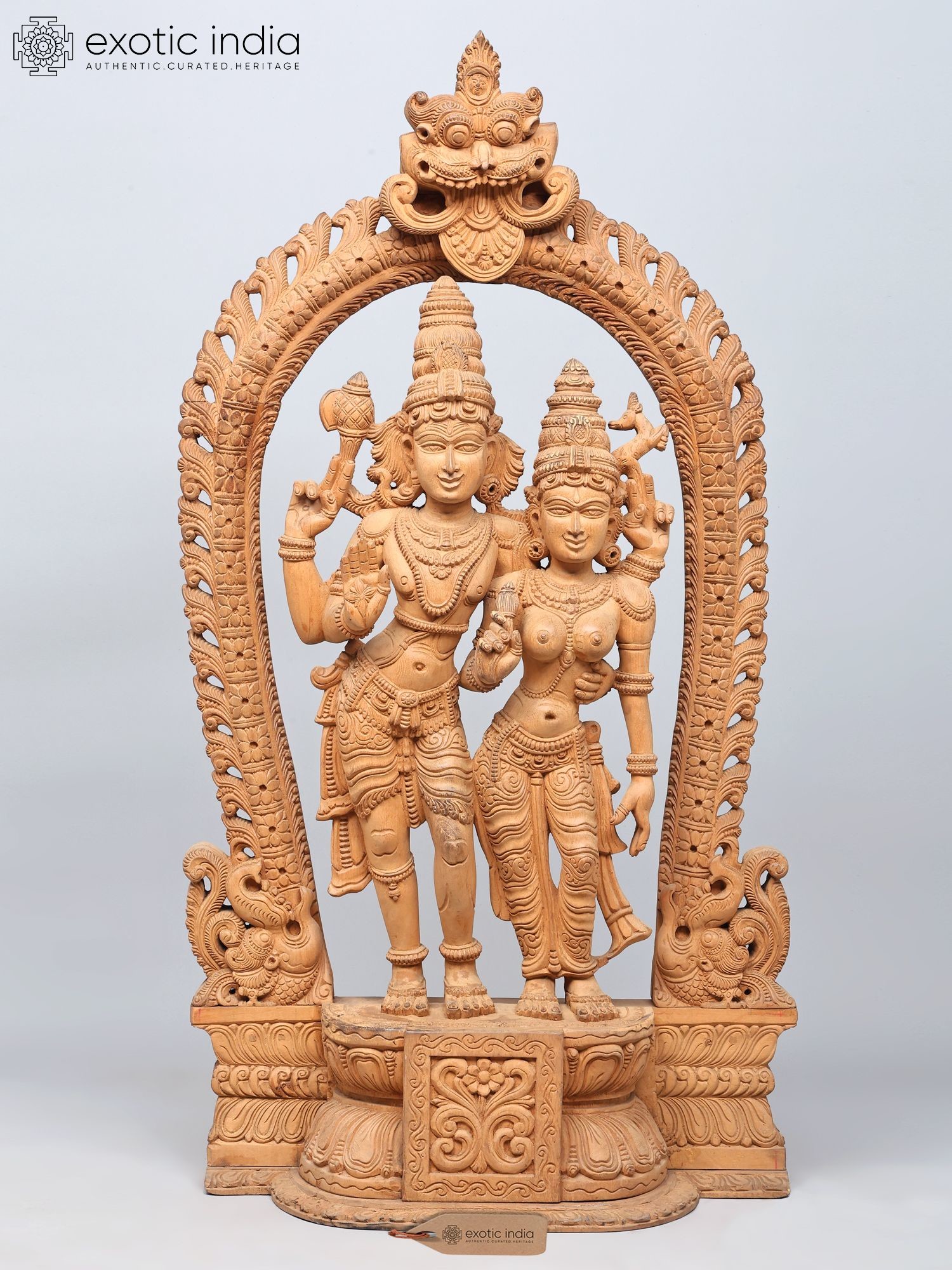 Shiva-Parvati Wood Sculpture: Graceful Standing Pose with Ornate Kirtimukha Arch