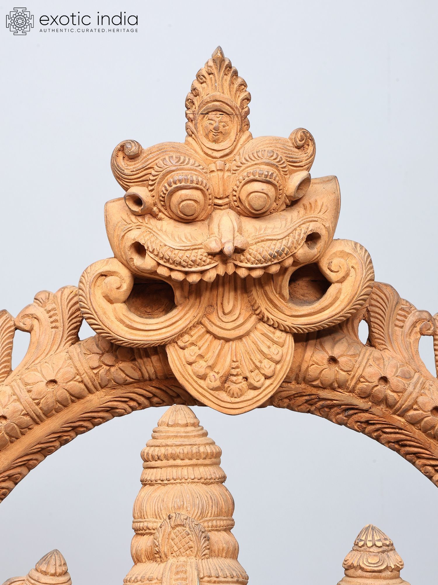 Features an intricately carved Kirtimukha arch, symbolizing auspiciousness and protection.