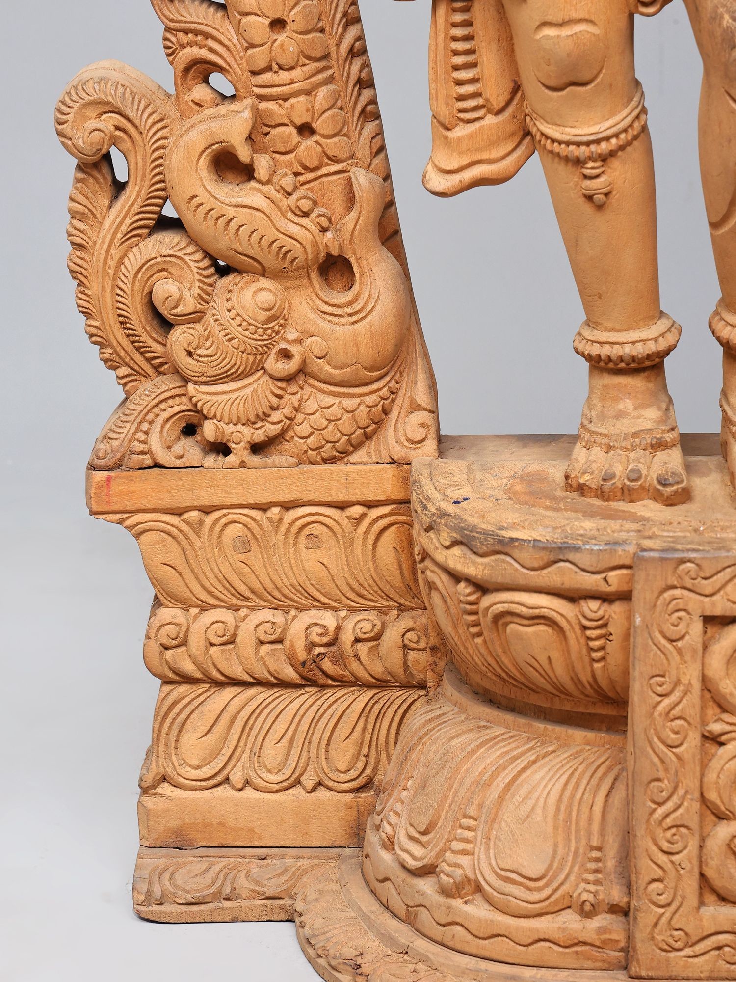 36" Large Standing Shiva Parvati on Kirtimukha Throne | Wood Carving | Antique Design