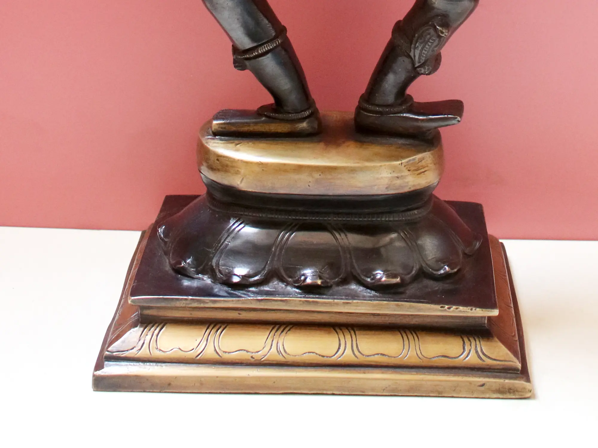 In Hindu mythology, Shiva is one of the principal deities of the Trimurti, alongside Brahma the creator and Vishnu the preserver. He is often depicted as an ascetic, a yogi, and the destroyer of evil, yet also as the benevolent lord who bestows boons. The Tandava itself is a multifaceted representation of Shiva's powers. The Rudra Tandava, a fierce dance, is associated with destruction and the annihilation of negative forces. Conversely, the Ananda Tandava, a dance of bliss, symbolizes creation and the joyous unfolding of the universe. This statue, with its energetic posture and symbolic attributes, encapsulates the duality and totality of Shiva's cosmic role. The very act of dancing, for Shiva, is an expression of divine energy and consciousness. It is through this cosmic dance that the universe is sustained and eventually dissolved, only to be recreated anew. This cyclical process, central to Hindu philosophy, is beautifully represented in this art form. The statue can serve as a powerful reminder of the impermanence of material existence and the eternal nature of the divine spirit. It is a piece that speaks to the profound spiritual concepts that have shaped Indian culture for millennia, offering a focal point for meditation and spiritual connection. ––––––––––