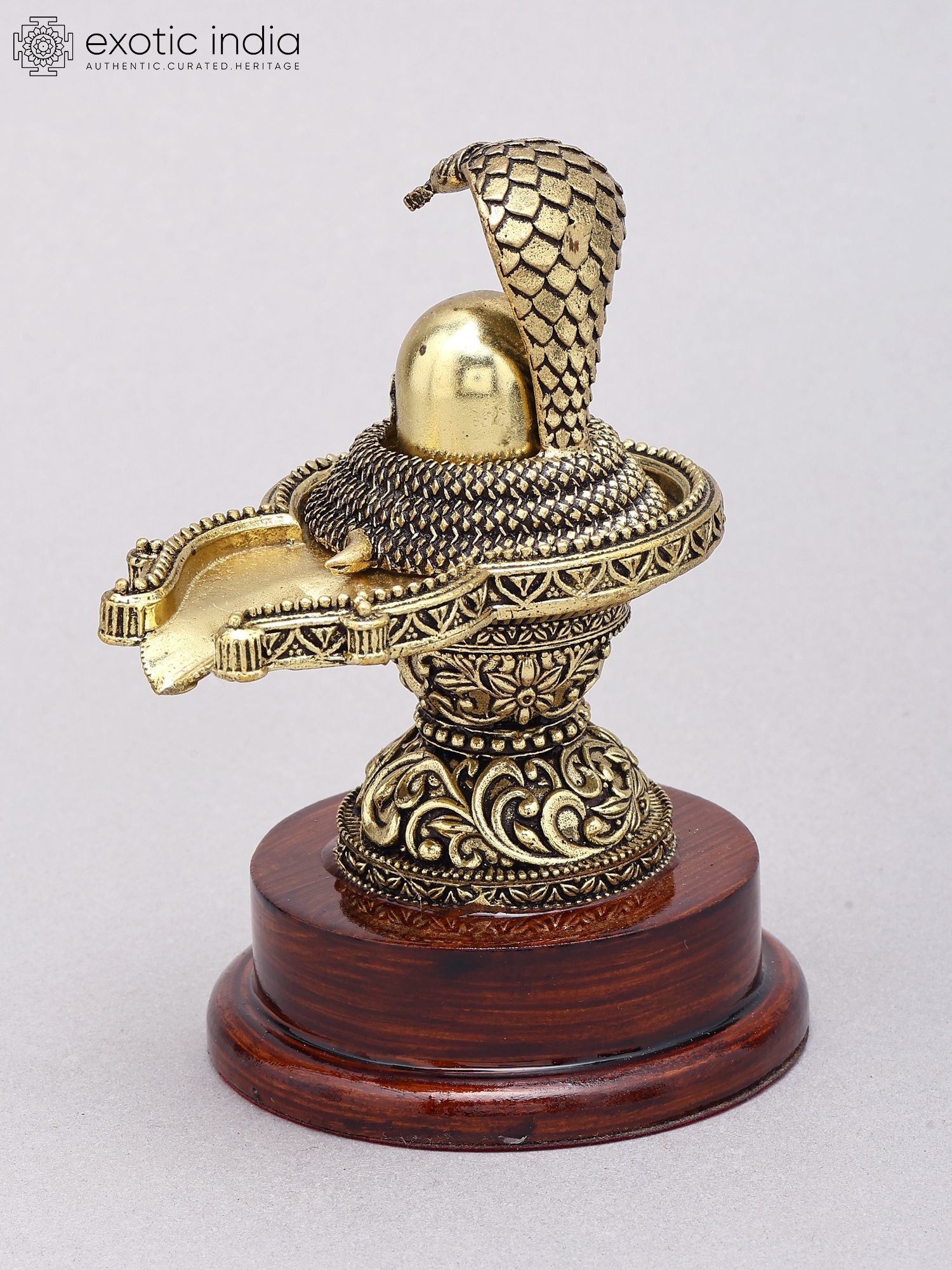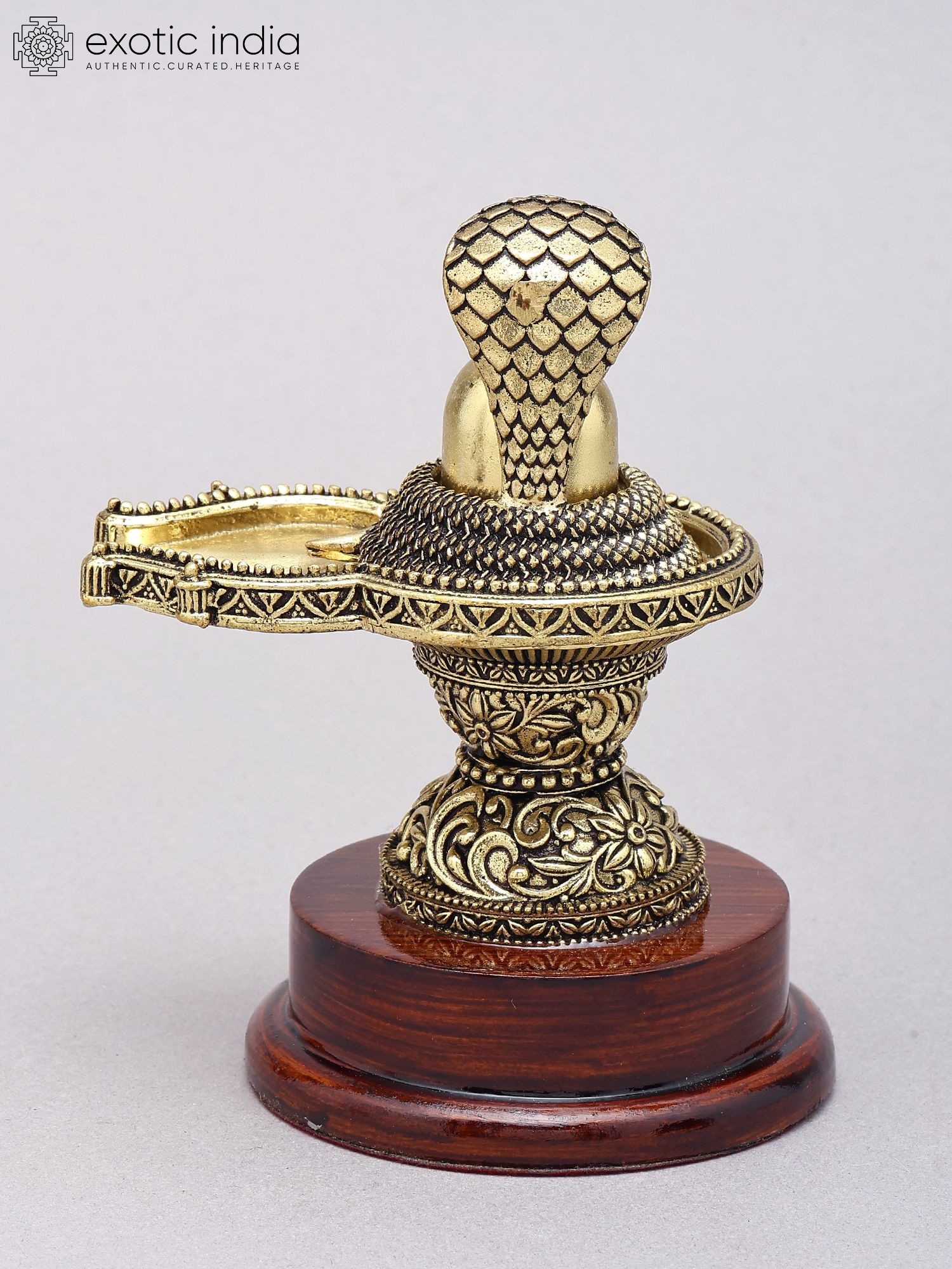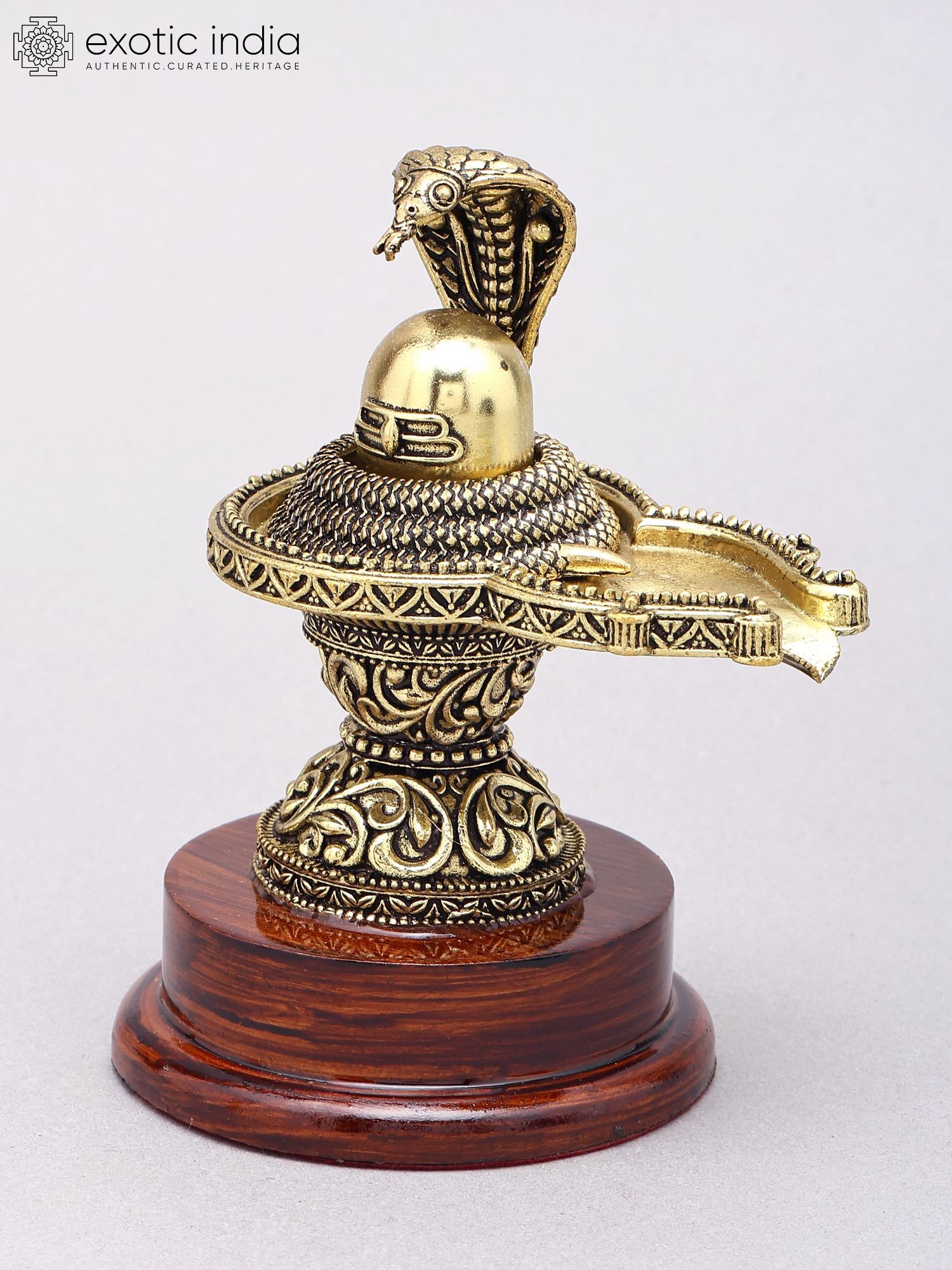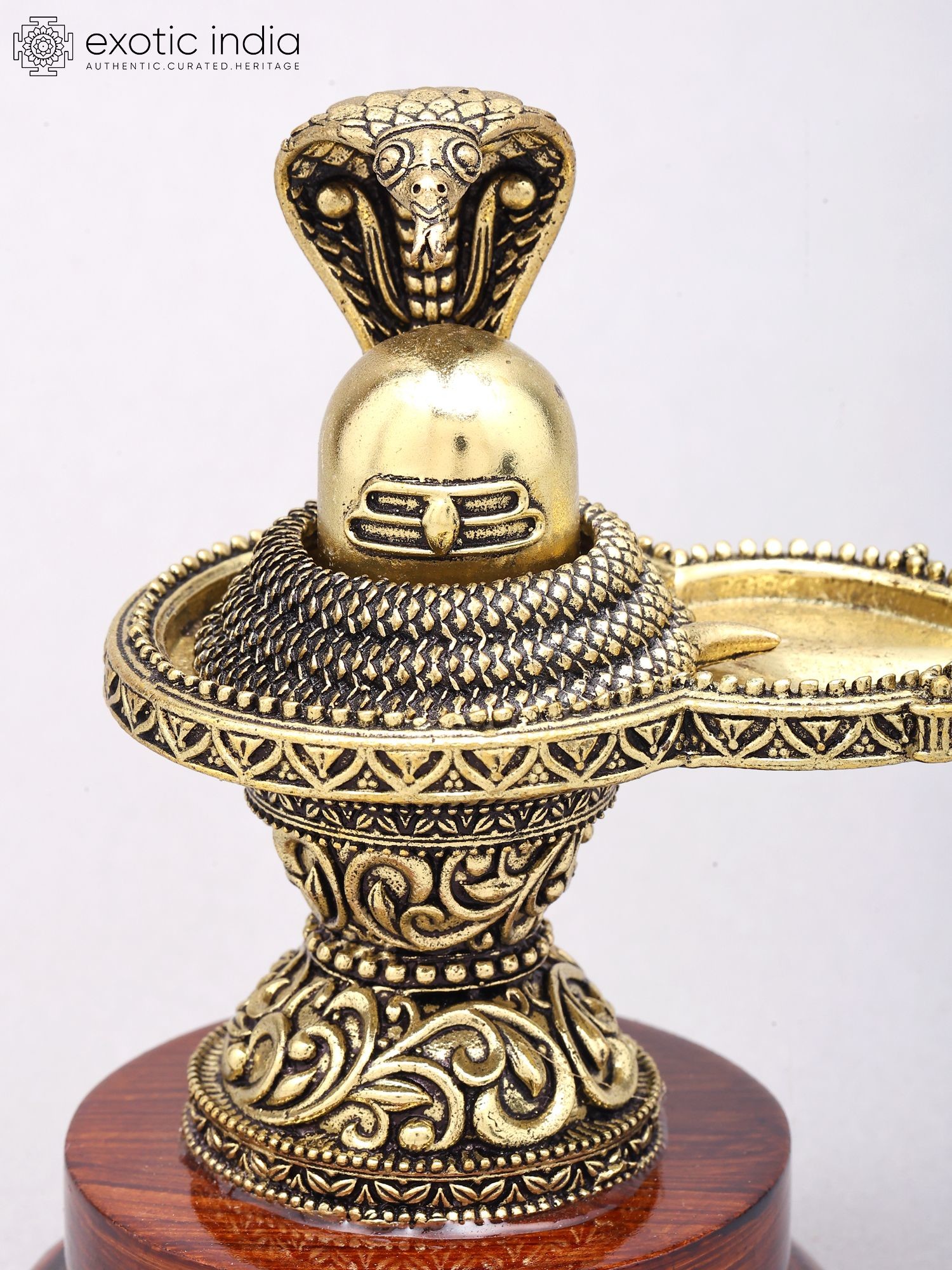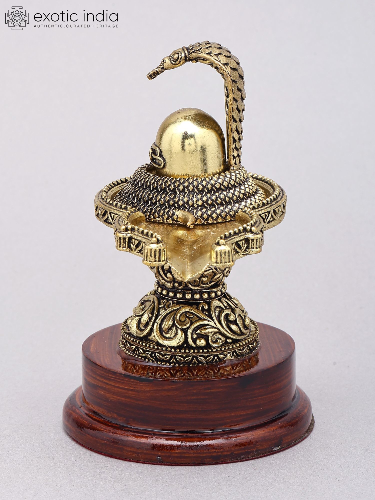 3" Superfine Brass Shivalinga with Protective Sheshnag