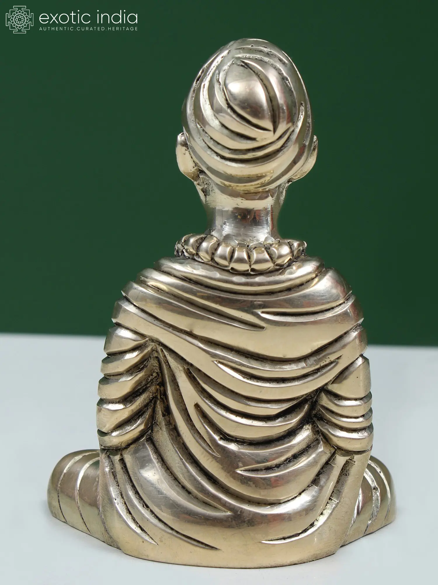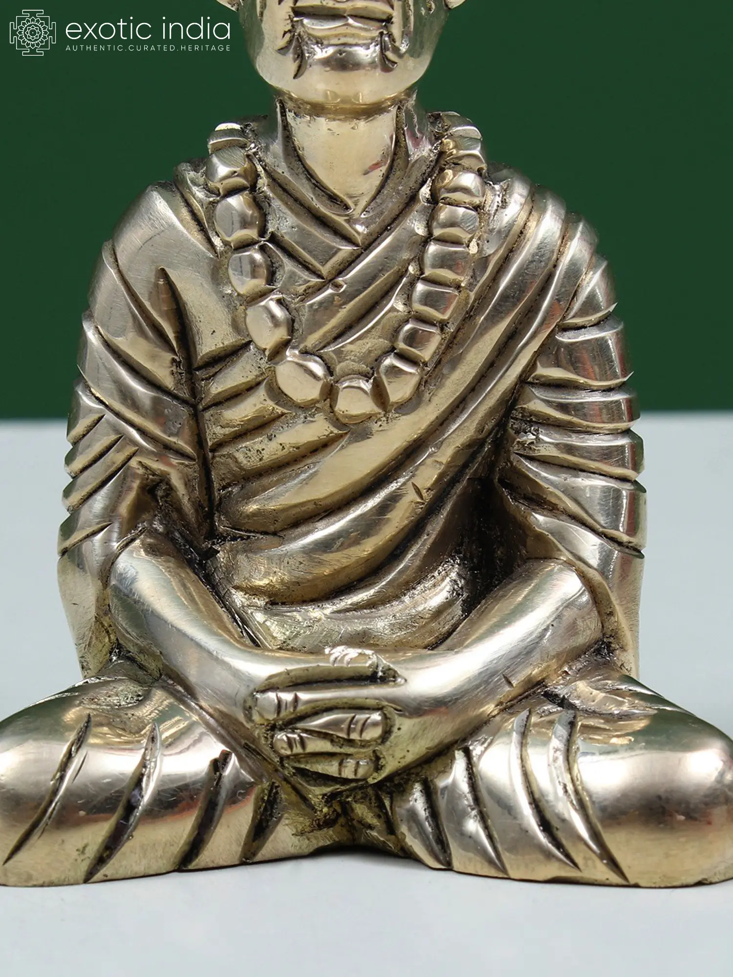 This elegant brass statue depicts Shri Kshetra Ram Ji Maharaj, a revered saint or guru within a specific Hindu tradition. Statues of such figures serve as a murti for devotees to focus their prayers and receive blessings - seated in dhyana mudra and remembrance, the beautiful murti serves as a powerful tool for spiritual practice and connection with a revered spiritual guide.