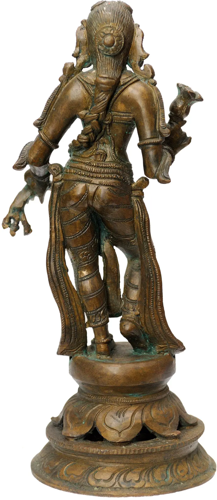 This statue originates from Swamimalai, a town renowned for its generations of skilled artisans who practice the ancient art of bronze casting known as "Lost Wax" or "Cire Perdue." This traditional method, dating back to the Chola dynasty, ensures the creation of one-of-a-kind pieces with unparalleled detail and craftsmanship. The process involves creating a wax model, which is then coated in clay. After the clay hardens, the wax is melted away, leaving a mold into which molten bronze is poured. Once cooled, the clay mold is broken, revealing the final bronze sculpture. Each step requires precision and expertise, passed down through families for centuries. The subtle variations and imperfections inherent in the lost wax method contribute to the unique character and authenticity of each statue, making it a truly special and valuable work of art. Owning a piece from Swamimalai means owning a piece of history, a tangible connection to a rich cultural heritage.