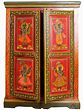 Constructed from high-quality wood, this cupboard is built to last, mirroring the enduring nature of faith. The hand-painted details ensure that each piece is unique, carrying the soul of the artisan who brought it to life. The rich colors are applied with care, creating a durable and beautiful finish. This piece not only offers practical storage solutions but also enriches your home with its spiritual significance and exquisite artistic detail. It is an heirloom piece, destined to be treasured for generations, carrying stories and blessings within its beautifully adorned form.