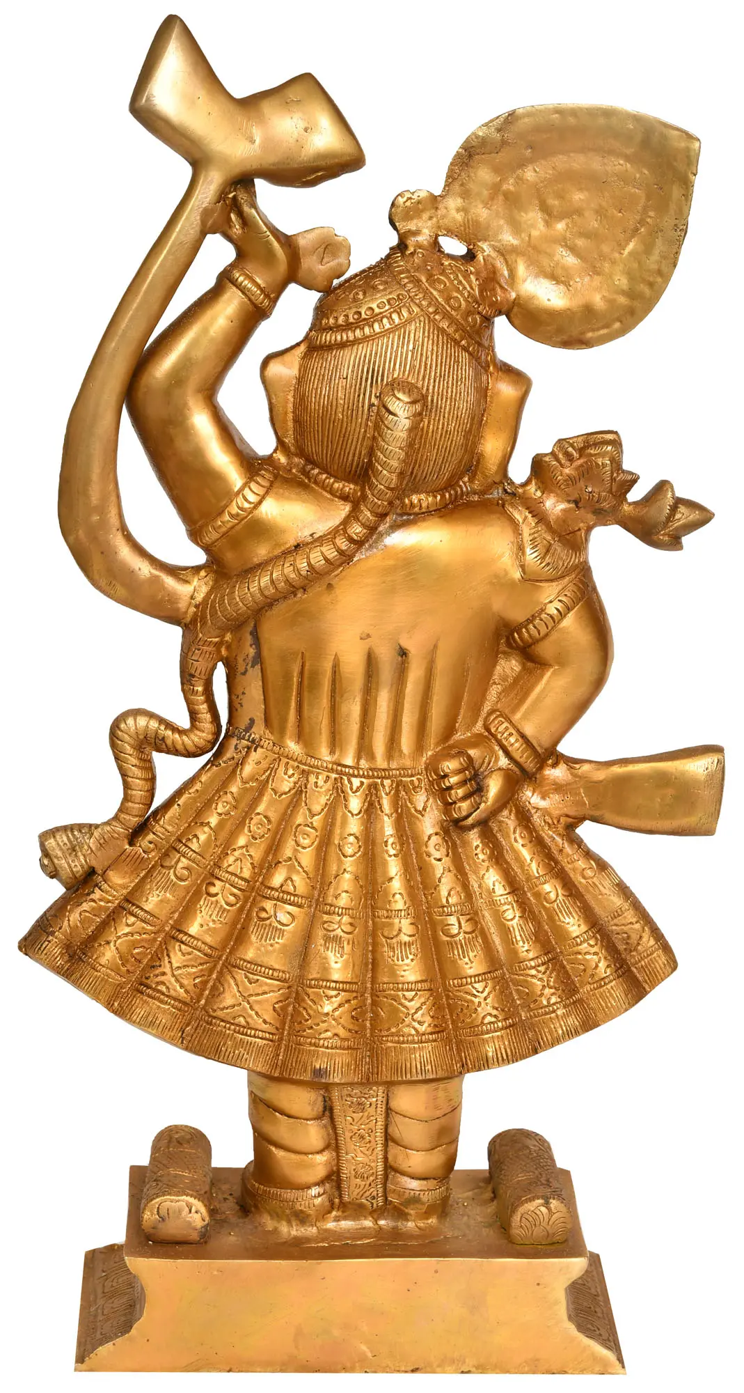 This exquisite brass statue captures the benevolent form of Shrinathji, a revered manifestation of Lord Krishna. Standing tall and radiant, the deity embodies divine grace and protective strength. The intricate detailing throughout the sculpture speaks to the skill of the artisan, transforming solid brass into a testament of devotion. Each element, from the serene expression on His face to the folds of His garments, has been meticulously crafted to evoke a sense of spiritual awe and profound peace. The warm, golden hue of the brass further enhances the divine aura, making this piece a truly captivating addition to any sacred space or art collection.