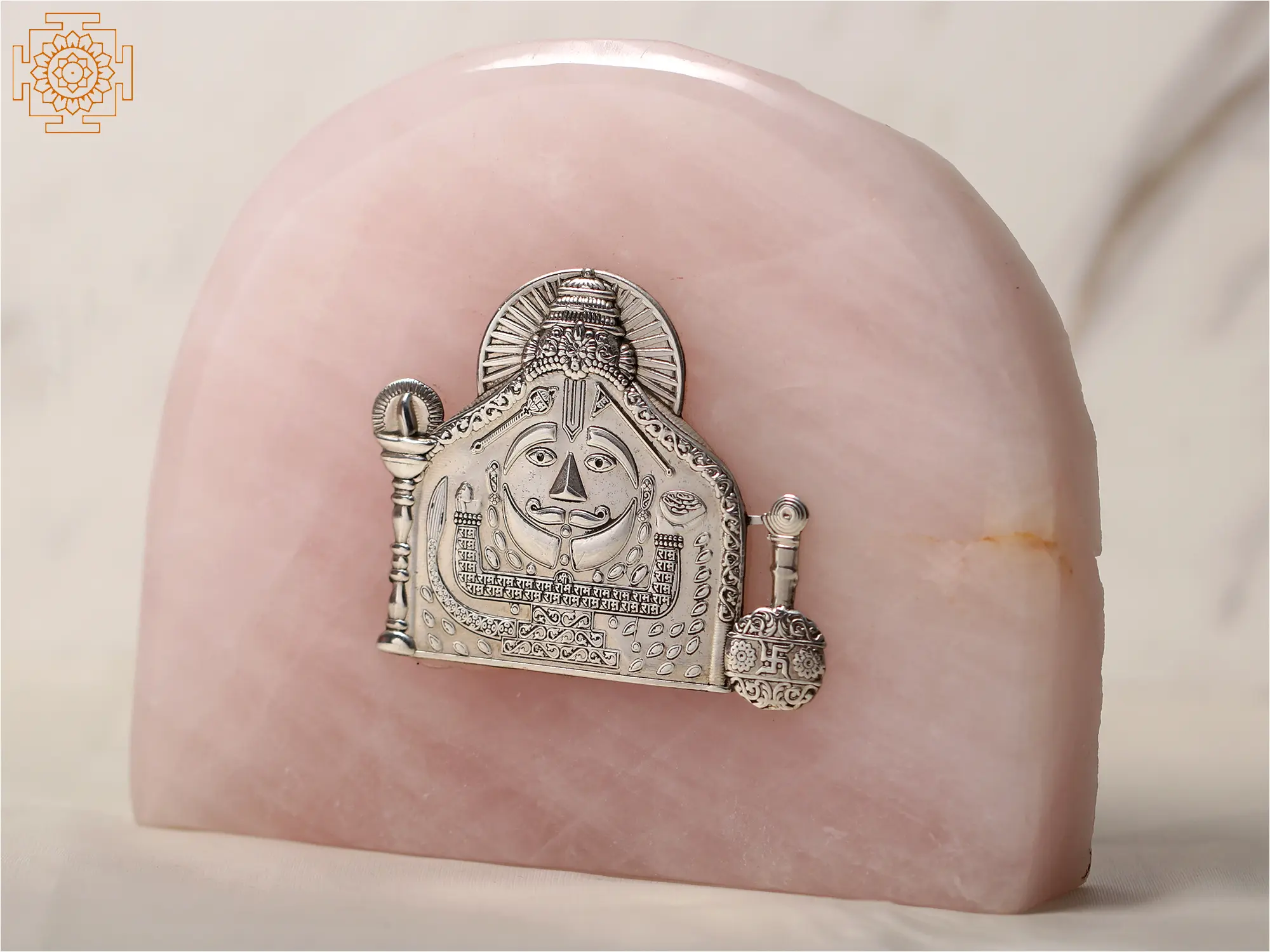 In the serenity of a Silver Mehandipur Balaji Bust on Rose Quartz Gemstone, the divine aura of Lord Balaji embraces the stone of love and healing. Balaji, the form of Lord Vishnu worshipped at Mehandipur, emanates divine grace upon the rose quartz. As you connect with this sculpture, let it remind you of the power of faith and devotion. Like Balaji, who heals and protects his devotees, find solace in your spiritual journey, knowing that the divine is always there to guide and support you. Embrace the loving energy of rose quartz and Balaji's blessings, for, in their presence, miracles unfold.