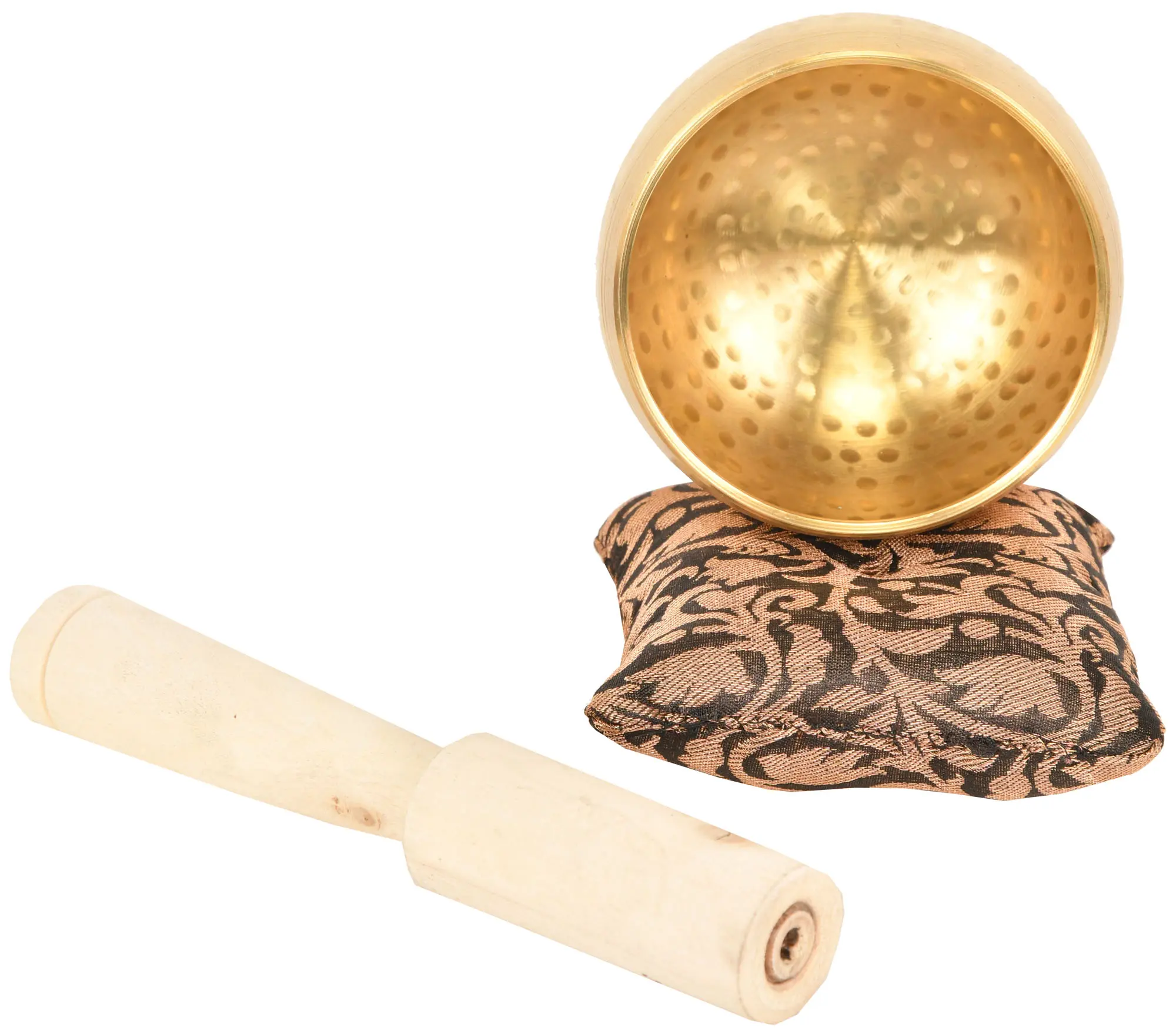 This particular singing bowl, with its beautiful hammered texture, is a testament to the skilled artistry passed down through generations. The subtle imperfections in its surface are not flaws but rather marks of its handmade origin, each one telling a story of dedication and care. The accompanying padded cushion provides a stable and elegant base, ensuring the bowl's rich tones are produced with clarity and depth. The wooden striker, designed for comfort and control, allows for a range of sounds, from a gentle hum to a vibrant, sustained note. The simple yet profound beauty of this set makes it a striking addition to any meditation space, altar, or home décor. It serves as a constant reminder of the importance of inner peace and the power of sound to transform our experience.