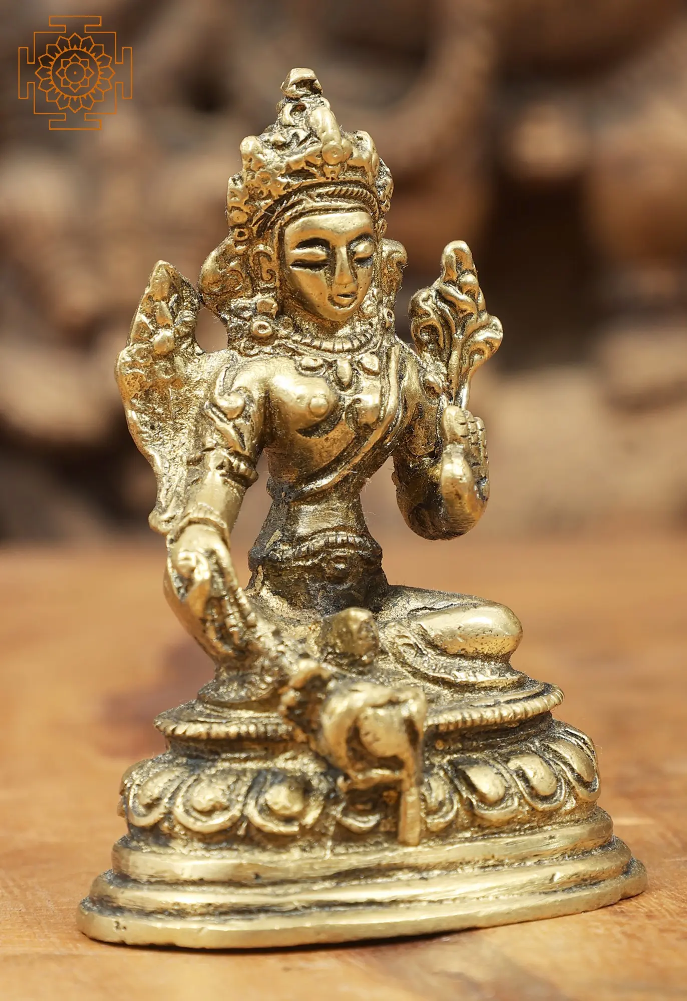 Green Tara, well known as “The Mother of Liberation”, embodies compassion and swift assistance. She represents the virtues of Success in work and achievements. With active compassion, she extends her hand to alleviate suffering and guide beings on their spiritual journey. Seated gracefully, one foot stepping down, Tara represents quick assistance to those in distress. Her mantra, “Om Tare Tuttare Ture Soha”, invokes her protection and guidance, resonating across Buddhist practices. Cast in gleaming brass, this sacred artwork inspires you to cultivate kindness, courage, and rapid enlightenment.