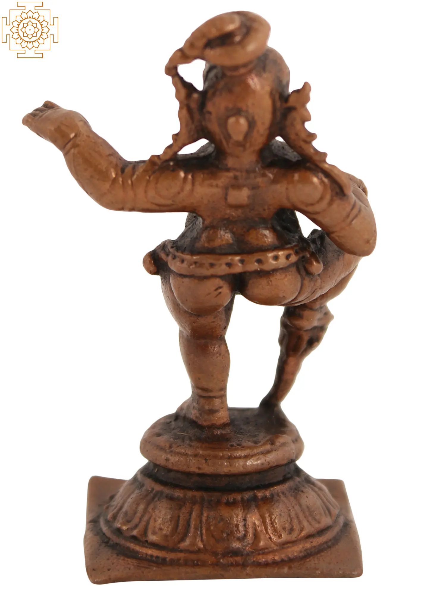 Lord Bala Krishna, also known as “Bala Gopala”, embodies pure joy and bliss. When Bala Krishna dances, it is a celestial spectacle that transcends earthly limitations. His joyful dance mesmerises the universe, captivating all with its grace and beauty. Flowers bloom, rivers sway, and even the wind joins in harmony with his rhythmic steps. In his dance, Gopala eradicates sorrow and ignites hearts with divine ecstasy. Every move of his tiny feet creates waves of happiness. Crafted from copper, this artwork reminds us that life’s true essence is found in the dance of joy, and in his presence, all worries and troubles dissipate into eternal bliss.