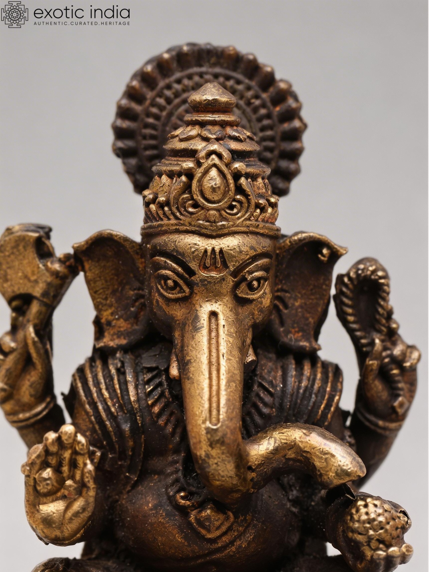 3" Small Ashtabhuja Lord Ganesha with Five Heads Seated on Kirtimukha Throne | Copper Statue | Made in India