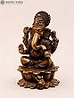 3" Small Copper Statue God Ganesha Seated on Chowki