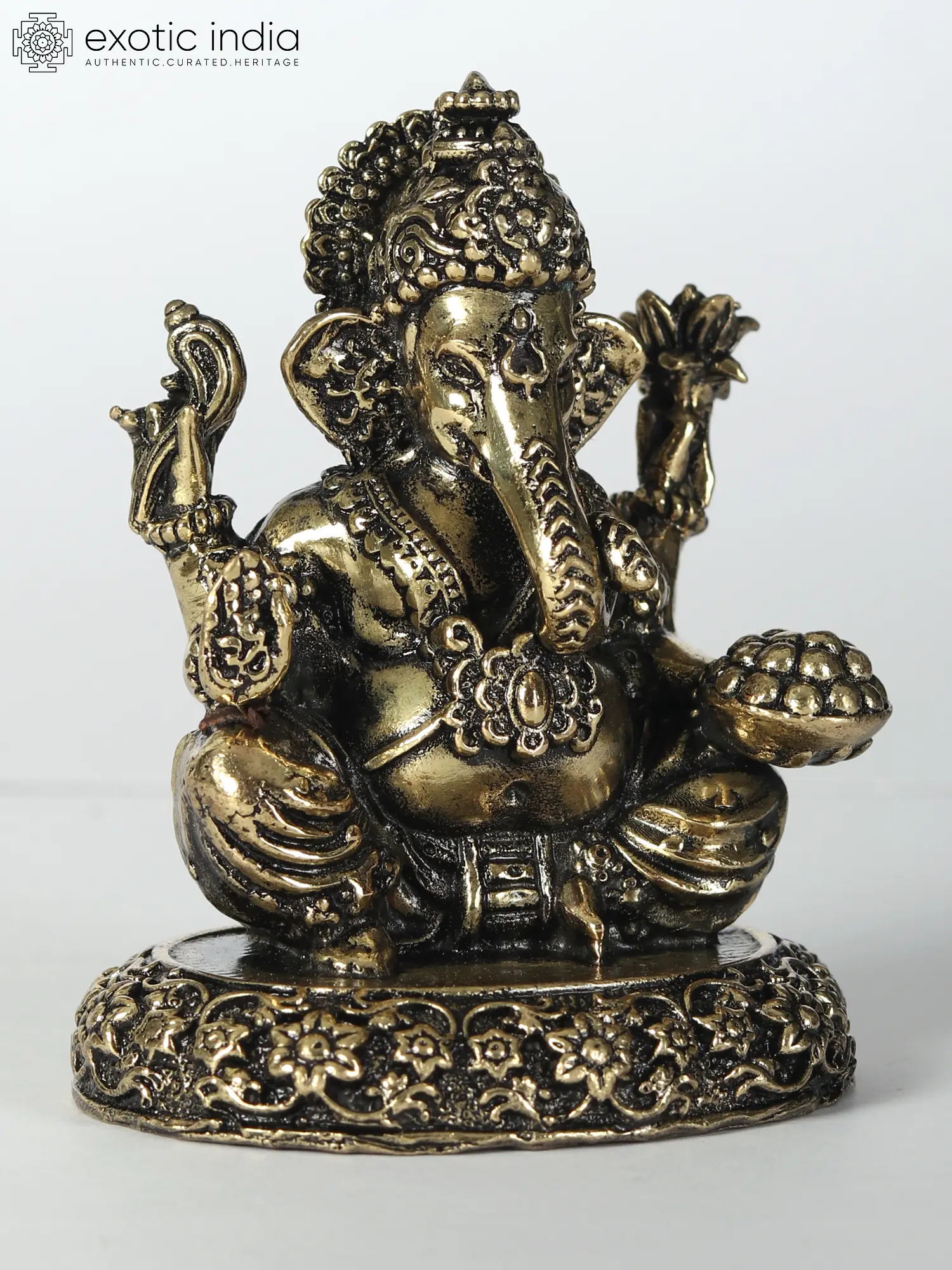 Seated on an opulent pedestal, Lord Ganesha, also known as Avaneesh, embodies divine grace. His benevolent gaze, hand poised in the reassuring “Abhaya Mudra”, exudes a tranquil aura. In his hands, the “Pasha (Noose)” signifies control over desires, while the Lotus symbolises purity and prosperity. The divine dichotomy unfolds as his left hand cradles a bowl of Modakas, sweet offerings, a testament to abundant blessings. Worshipping this form grants solace and guidance, dispelling obstacles with the noose, and nurturing spiritual growth. Lord Ganesha’s cosmic dance intertwines discipline and sweetness, teaching that embracing life’s challenges with grace leads to the ultimate reward—a harmonious existence.