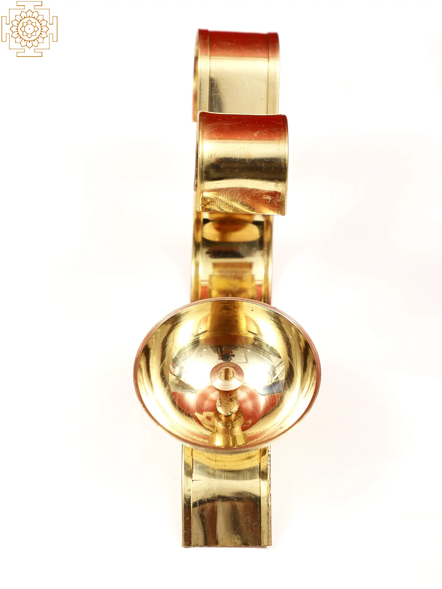 Aum, Om, Pranava, and Eka Akshara are all words found in Hindu, Buddhist, Jains, and Sikh literature. The sign has been blended with other ritual objects to improve the item's favorable impact. A handle portraying the OM (Aum) has been added to a brass diya. In Hindi, the Om sign is composed of three elements. The massive bottom curve symbolizes awake (jgrat), the higher curve represents unconsciousness (sushupti), and the middle curve represents dreaming (swapna). The handle is incredibly cleverly created by placing the diya on the bottom curve (jgrat) and using the symbol's tail as the grip.