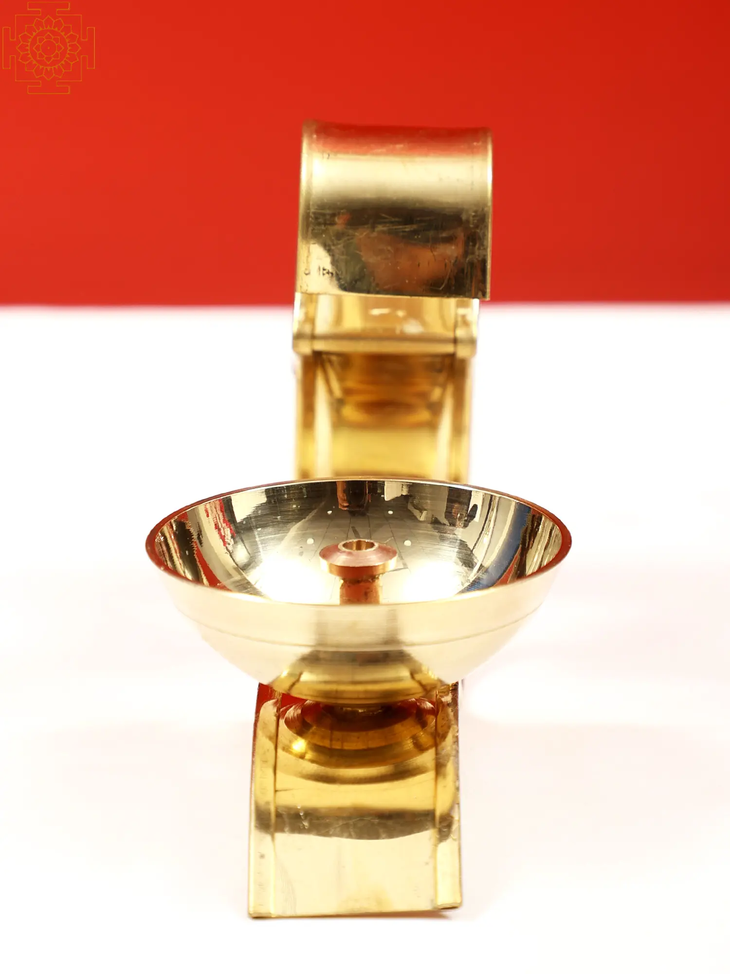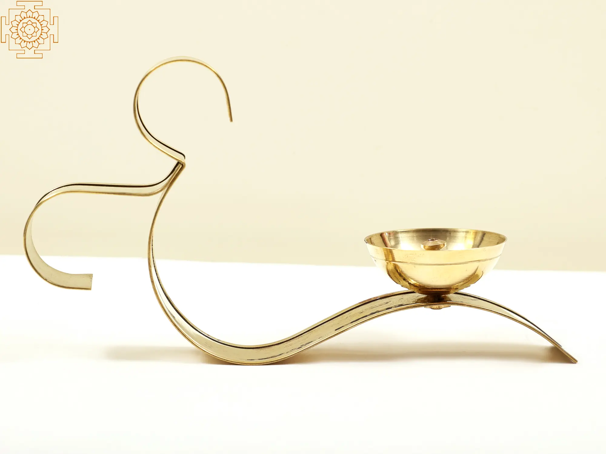 Aum, Om, Pranava, and Eka Akshara are all words found in Hindu, Buddhist, Jains, and Sikh literature. The sign has been blended with other ritual objects to improve the item's favorable impact. A handle portraying the OM (Aum) has been added to a brass diya. In Hindi, the Om sign is composed of three elements. The massive bottom curve symbolizes awake (jgrat), the higher curve represents unconsciousness (sushupti), and the middle curve represents dreaming (swapna). The handle is incredibly cleverly created by placing the diya on the bottom curve (jgrat) and using the symbol's tail as the grip.