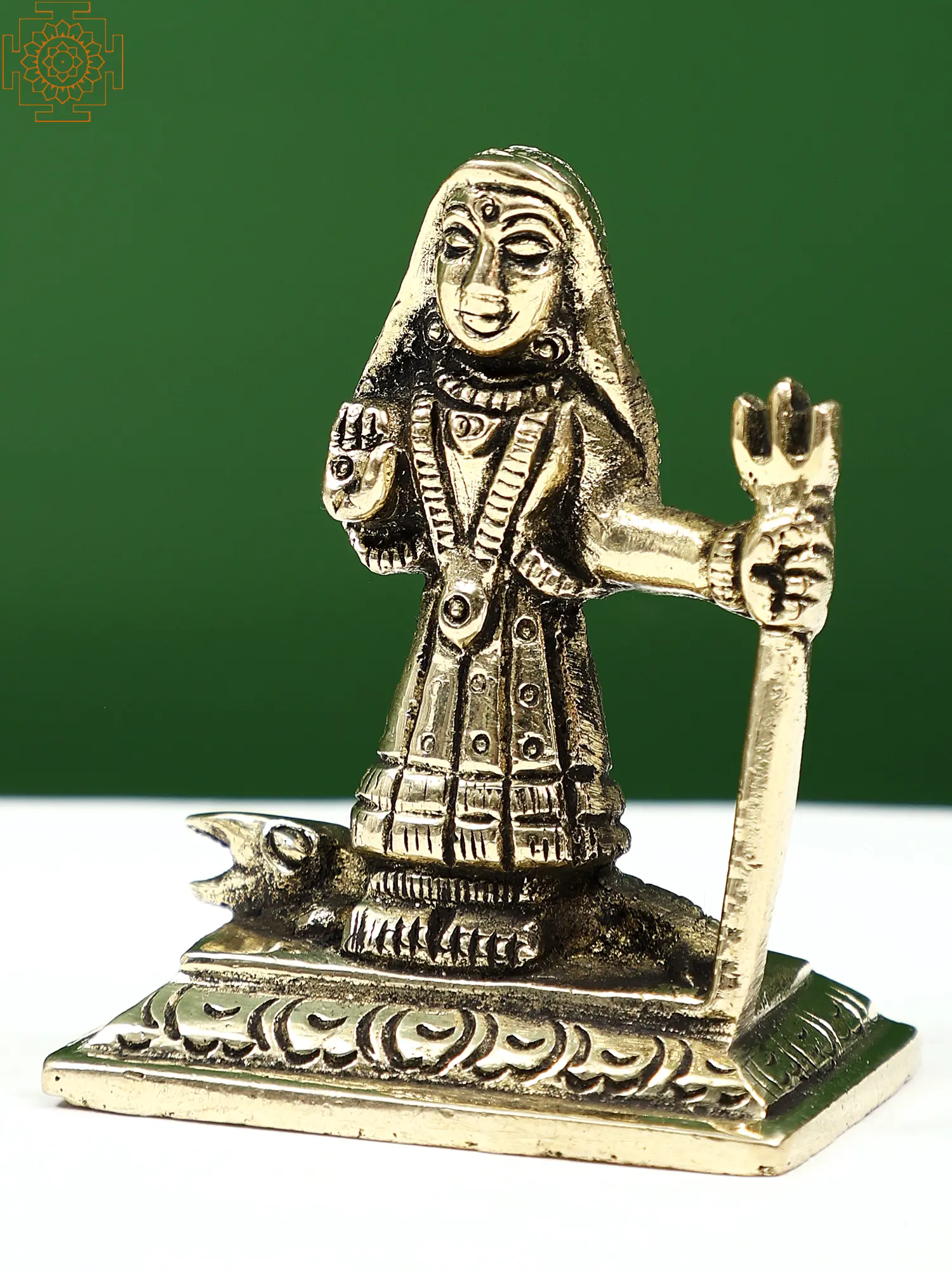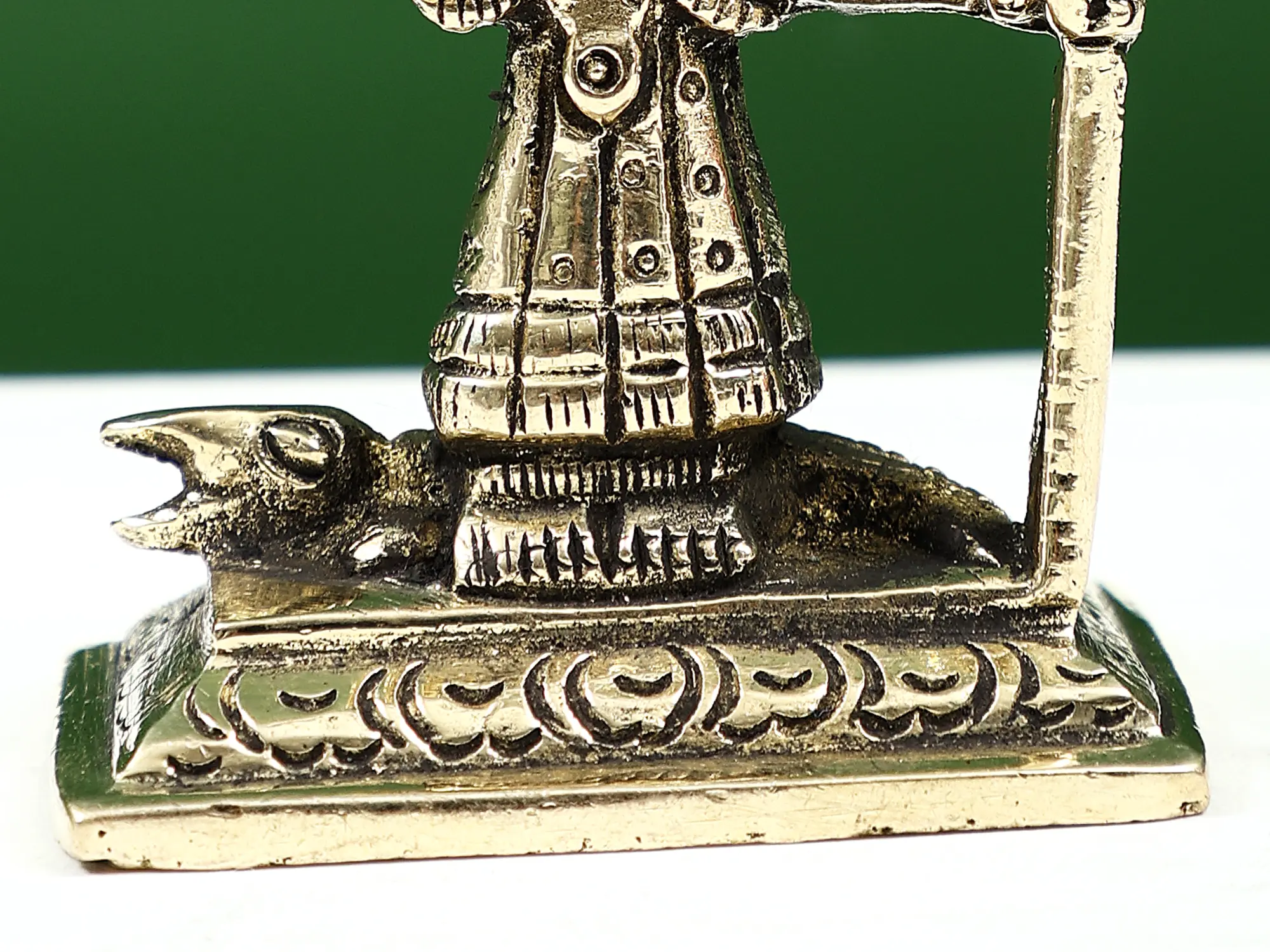 This brass idol is the form in which Khodiyar Mata is worshipped by many clans of Gujrat and Rajasthan, riding on a crocodile, with a trident in her hand, signaling her devotees to be fearless with her hand gesture.