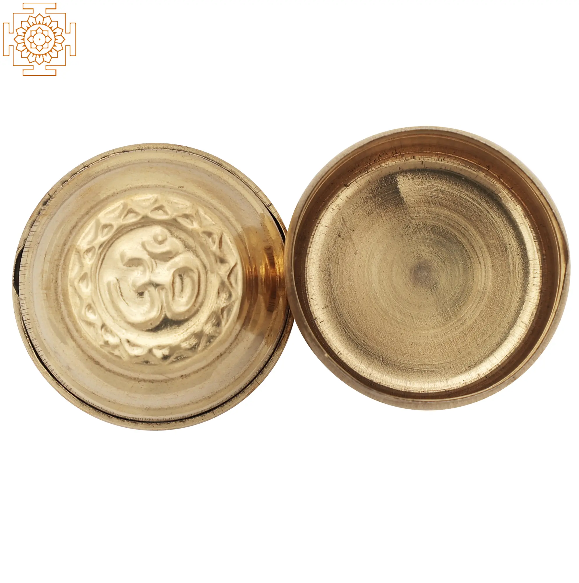 This Small Brass Aum Kumkum Box, also known as a Sindoor Box, carries the sacred symbol "Aum" that encapsulates the universe's cosmic vibrations. In Hindu philosophy, "Aum" represents the ultimate truth and the divine connection with the cosmos. This intricately designed brass box is ideal for storing kumkum or sindoor, both significant in Hindu rituals for their auspicious qualities. As you apply them during your puja, you invoke the divine feminine energy and seek blessings for a long and prosperous married life.