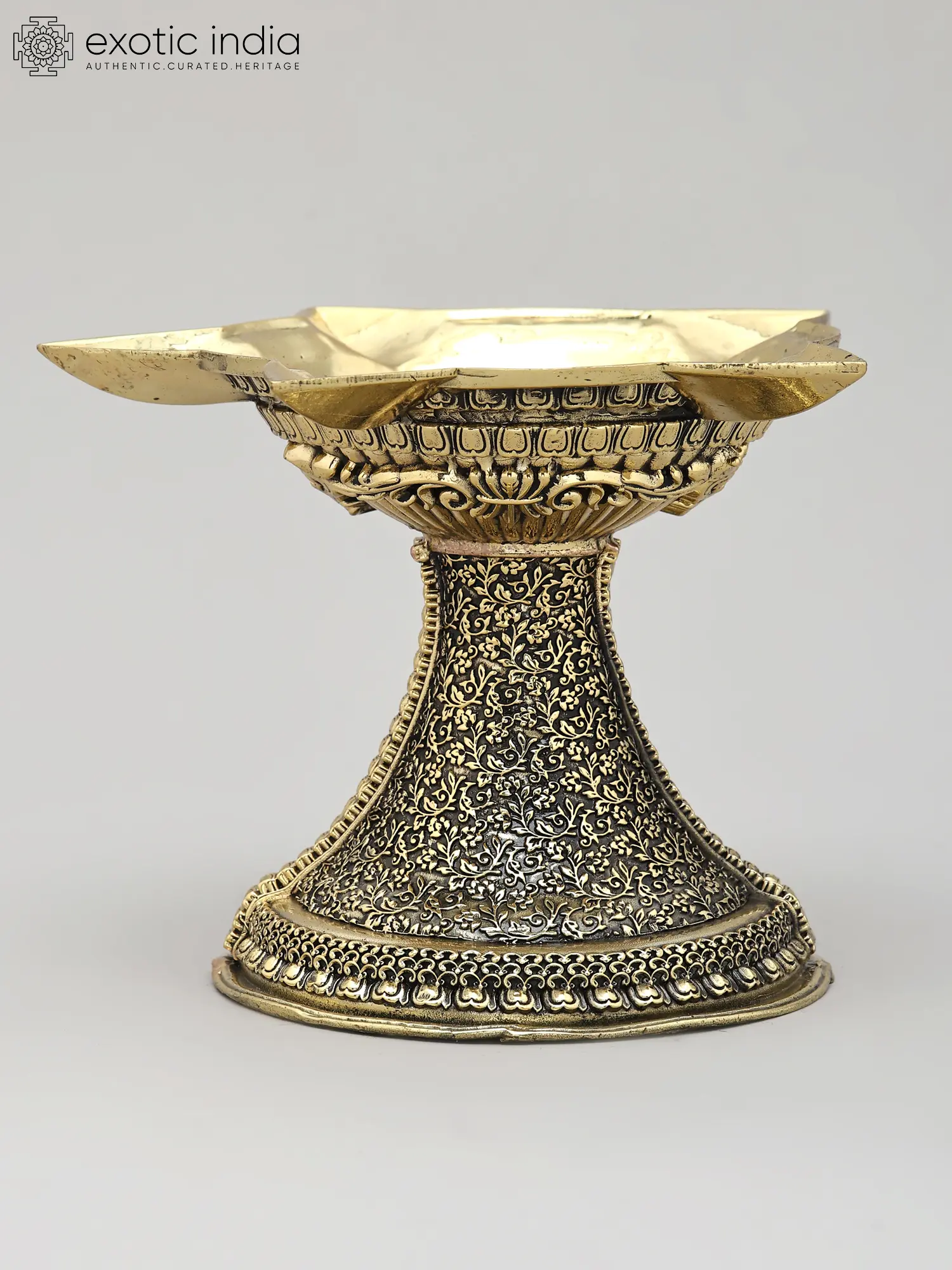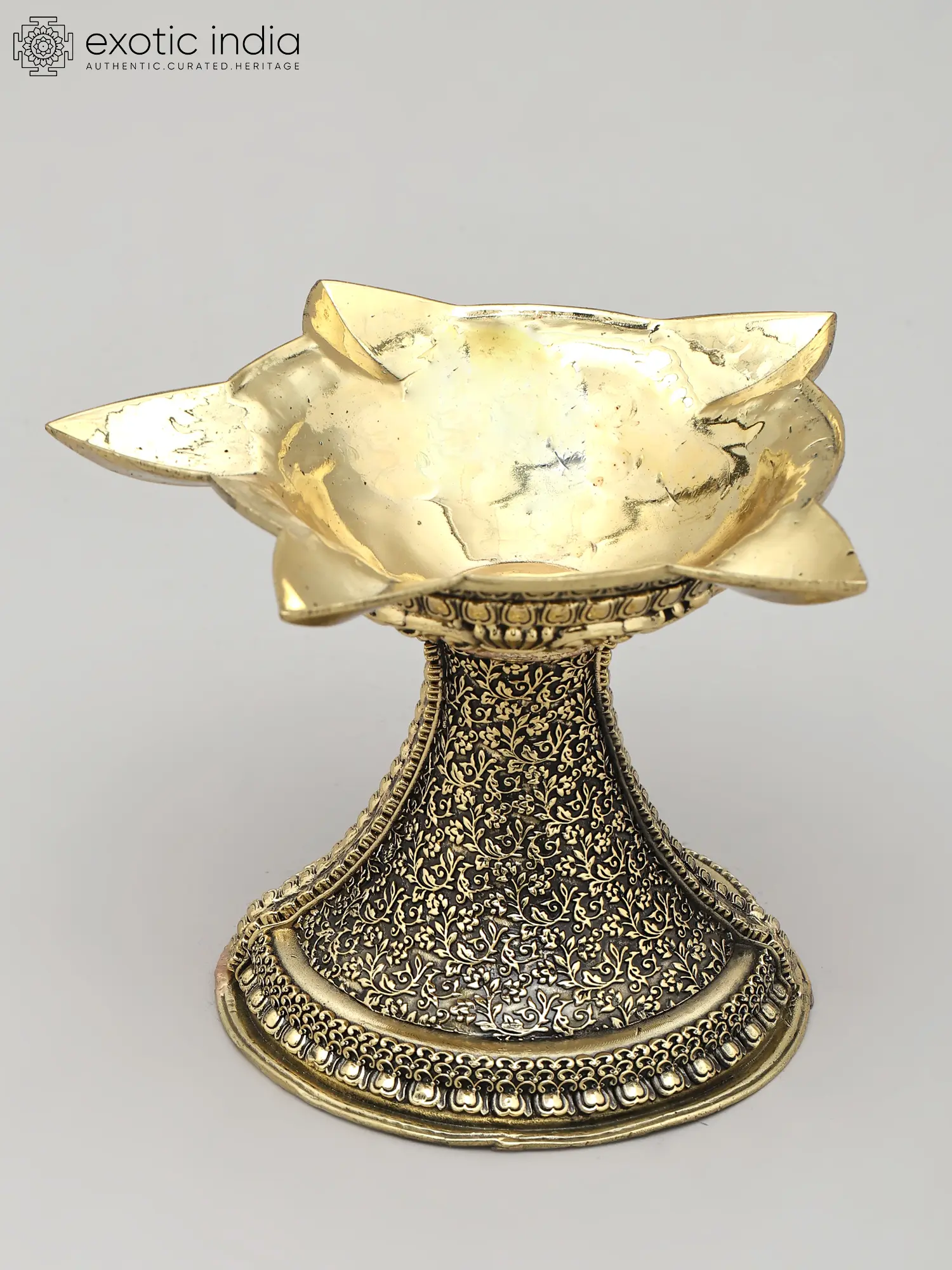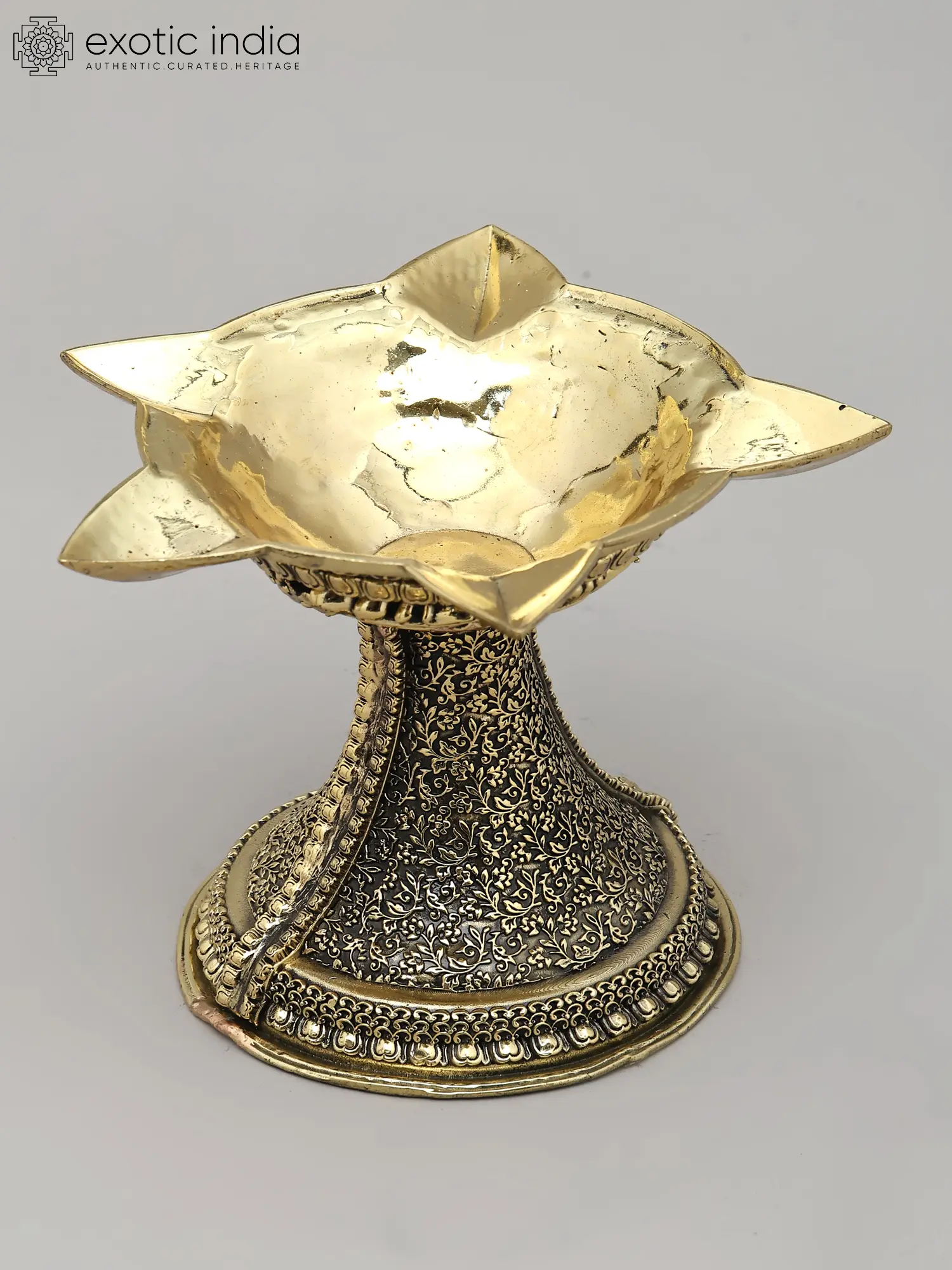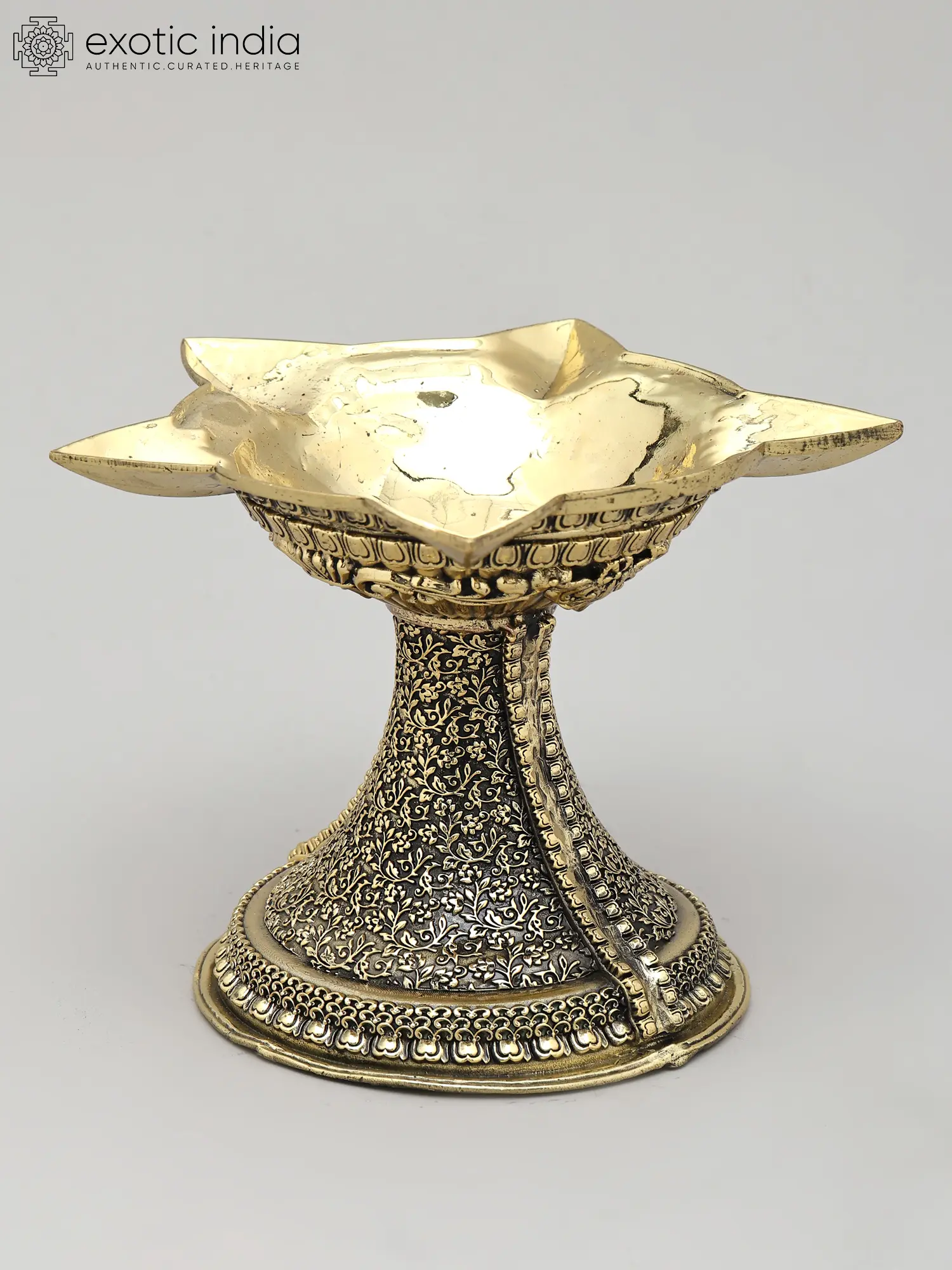 27" Large Fluting Krishna Lamp in Brass | Exquisite Handmade Craft | Authentic Indian Art