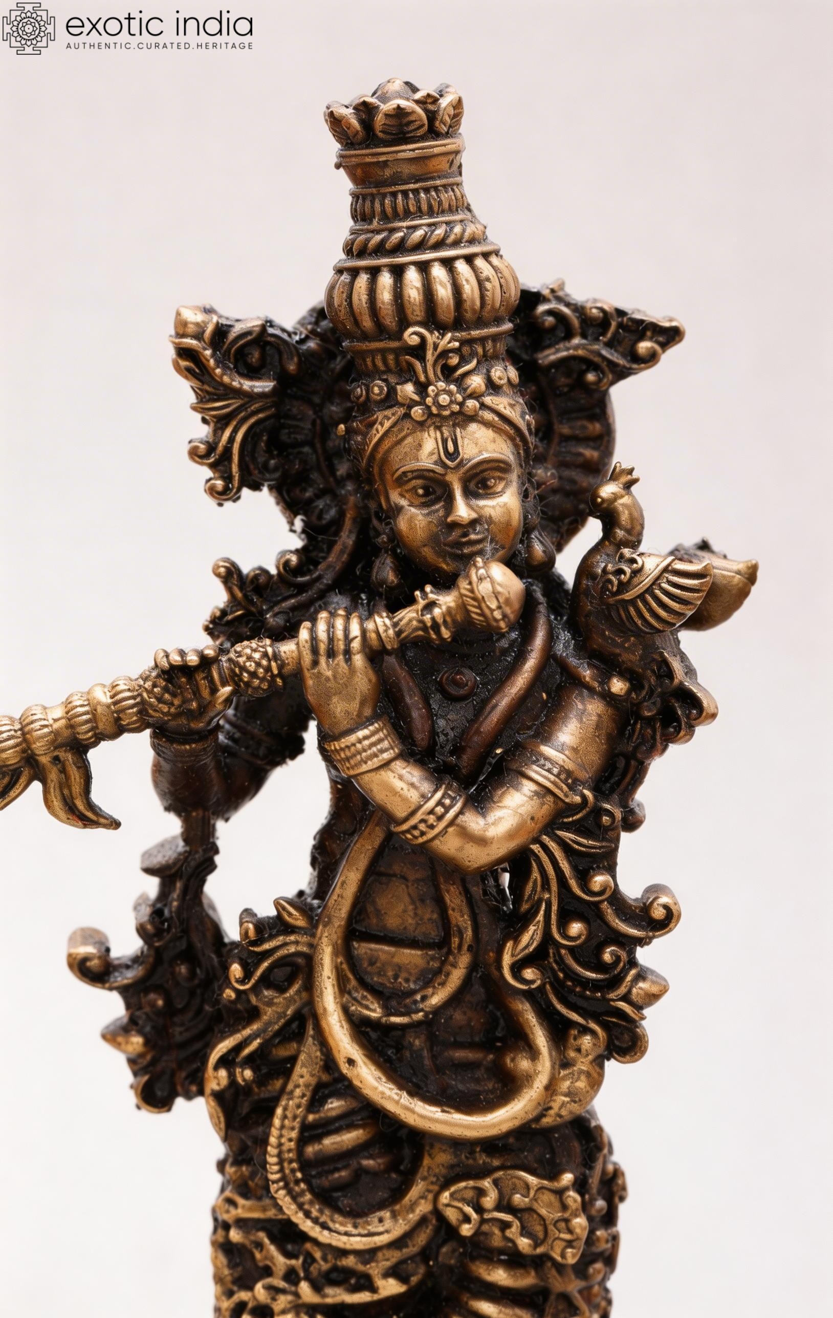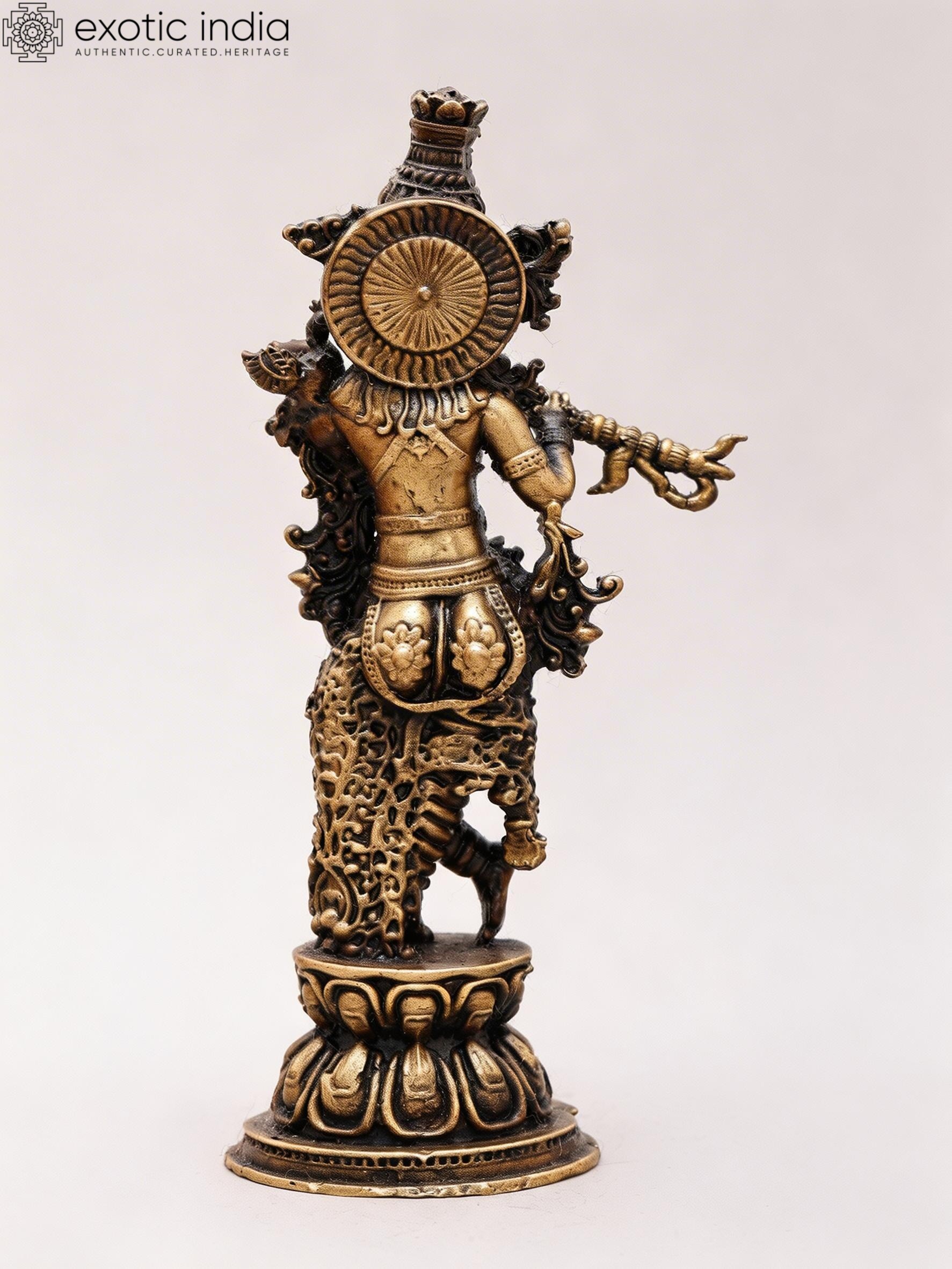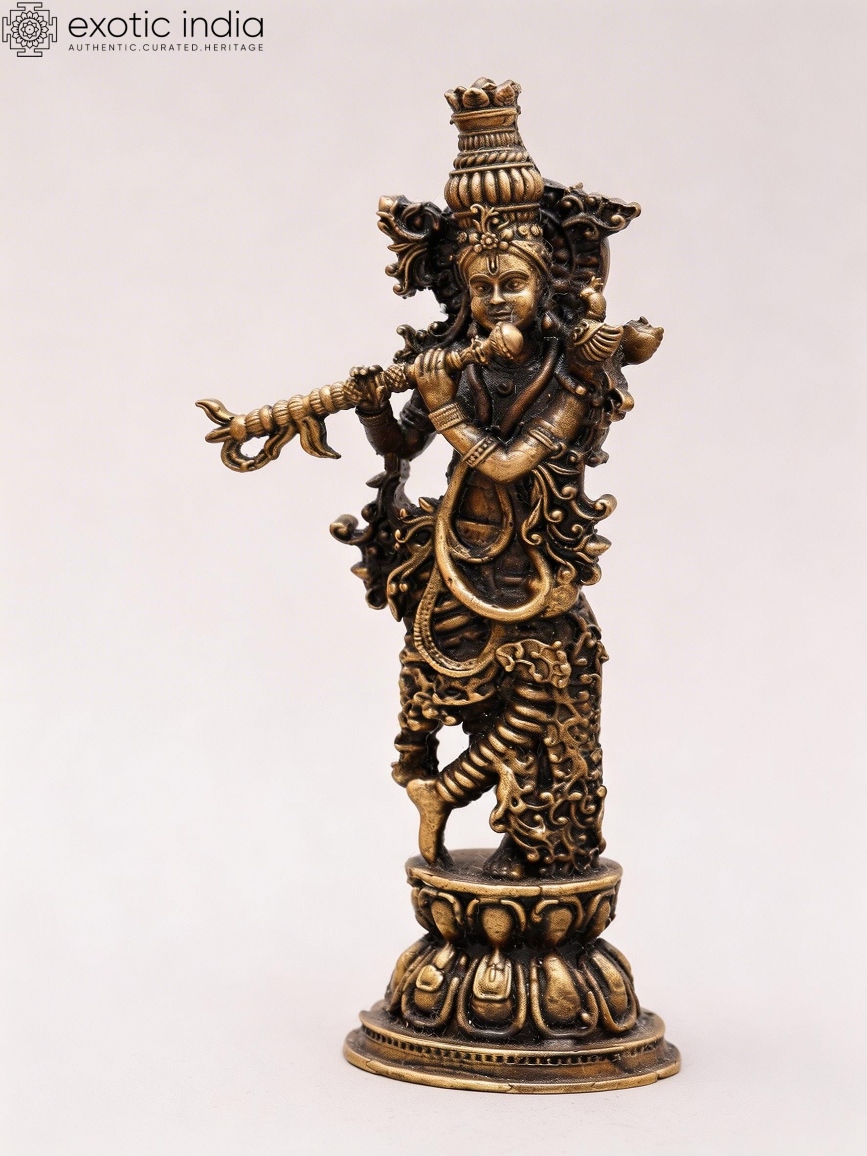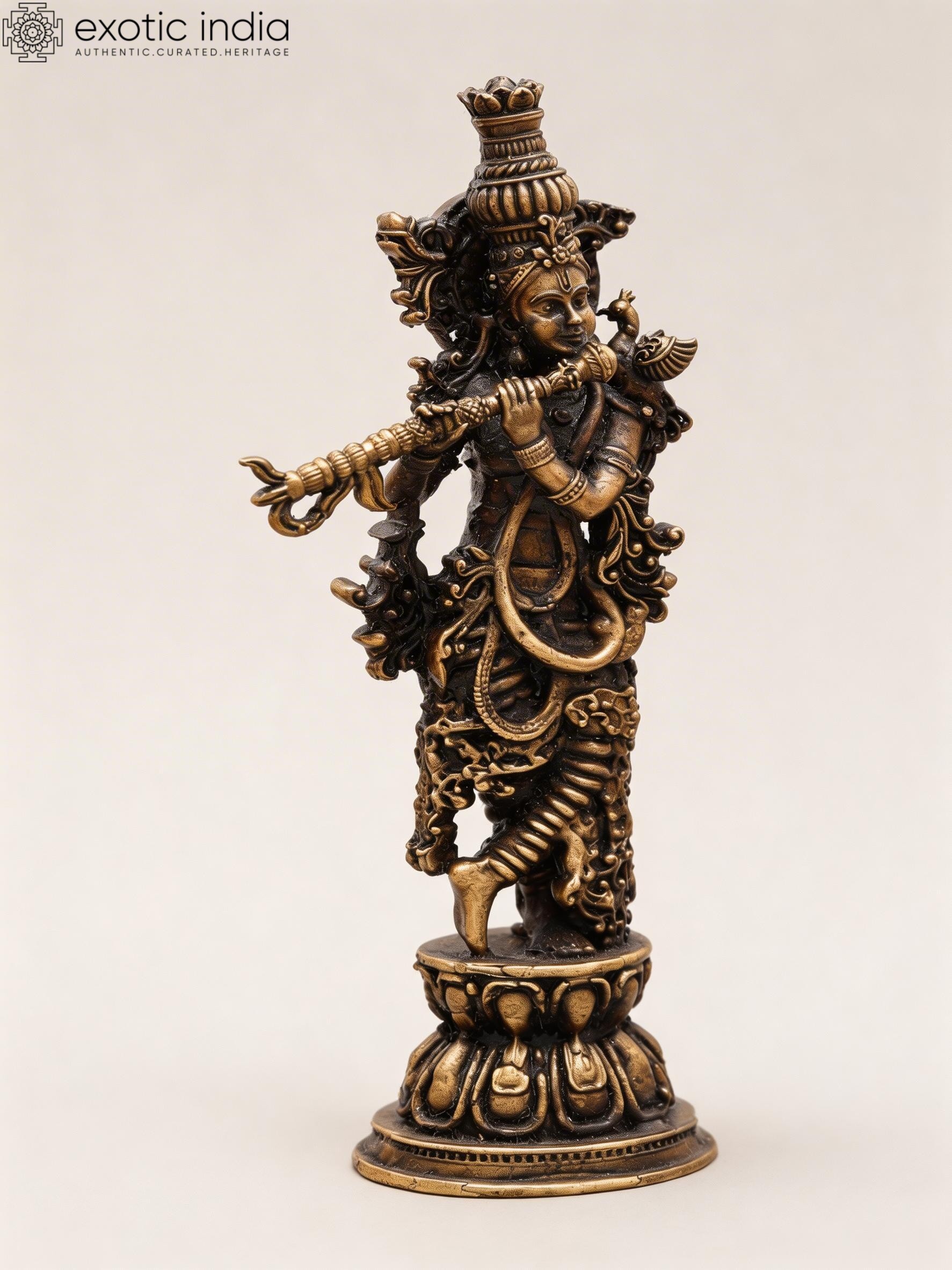 Features a 4-inch tall copper statue of Lord Krishna, the divine Hindu deity.