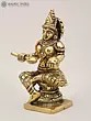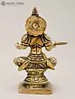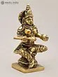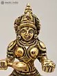 We have the famous goddess Annapurna (anna- food grain, poorna- provider) in brass here, a compact metal statue, with adornments as simple as the message this incarnation contains. Devi here is sitting in Lalitasana (posture of royal ease) on an inverted lotus, an attribute of goddess Lakshmi, who is also associated with the abundance of food and the fertility of the earth. Her slender body is decorated with simple jewelry and a kirit-mukuta/crown highlighting her status as a divinity. In the hand of this Devi Annapurna brass statue, we can see a cup and ladle, symbols of the incessantly open kitchen of the mother-goddess, ready to provide her children with the nourishment of her motherly affection.