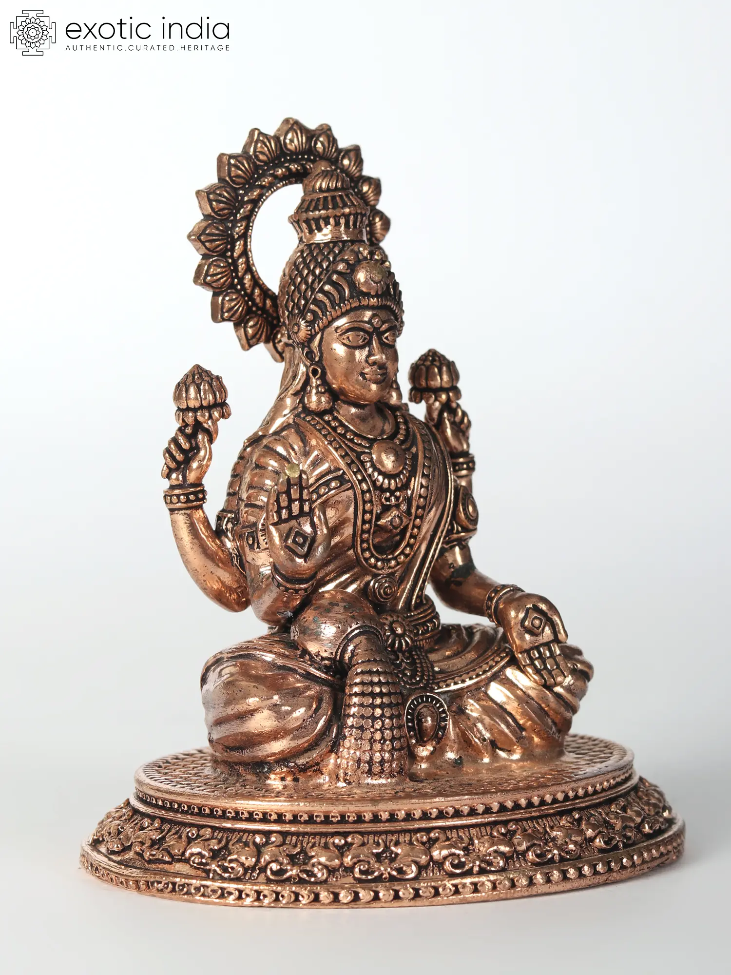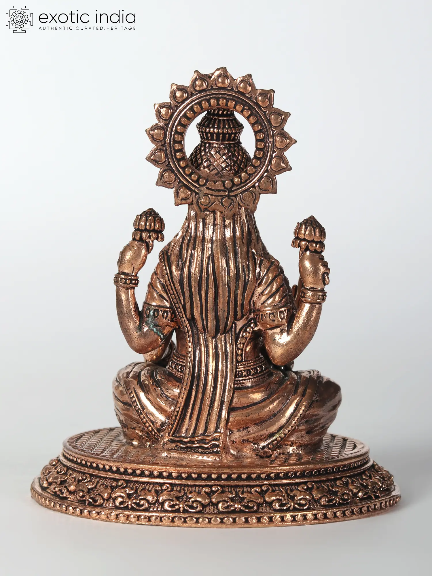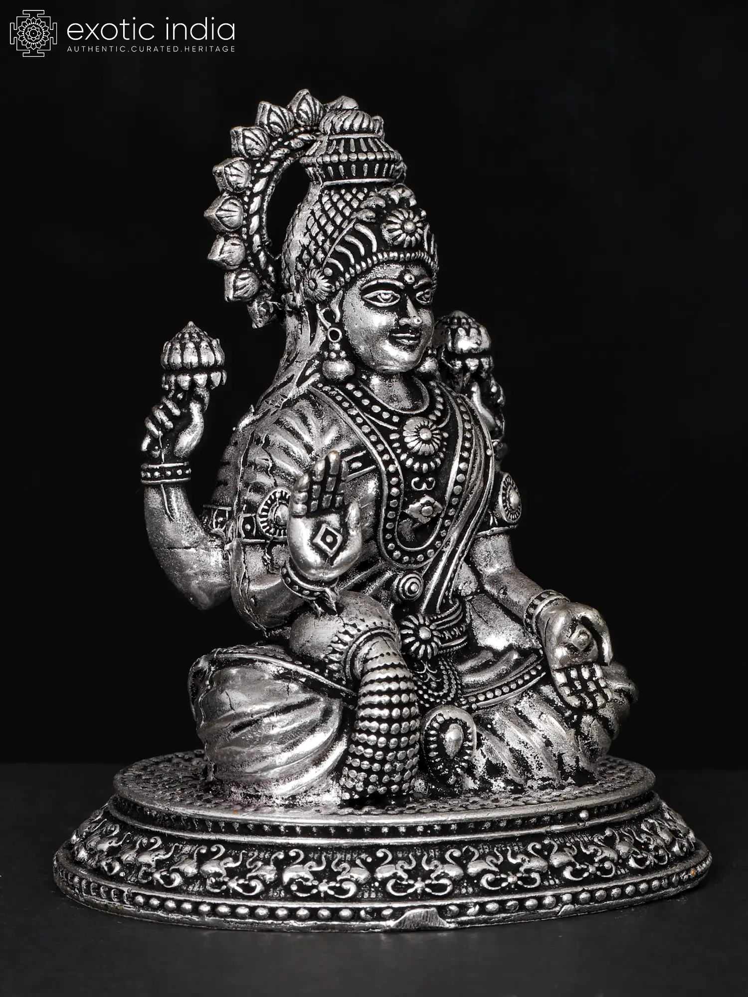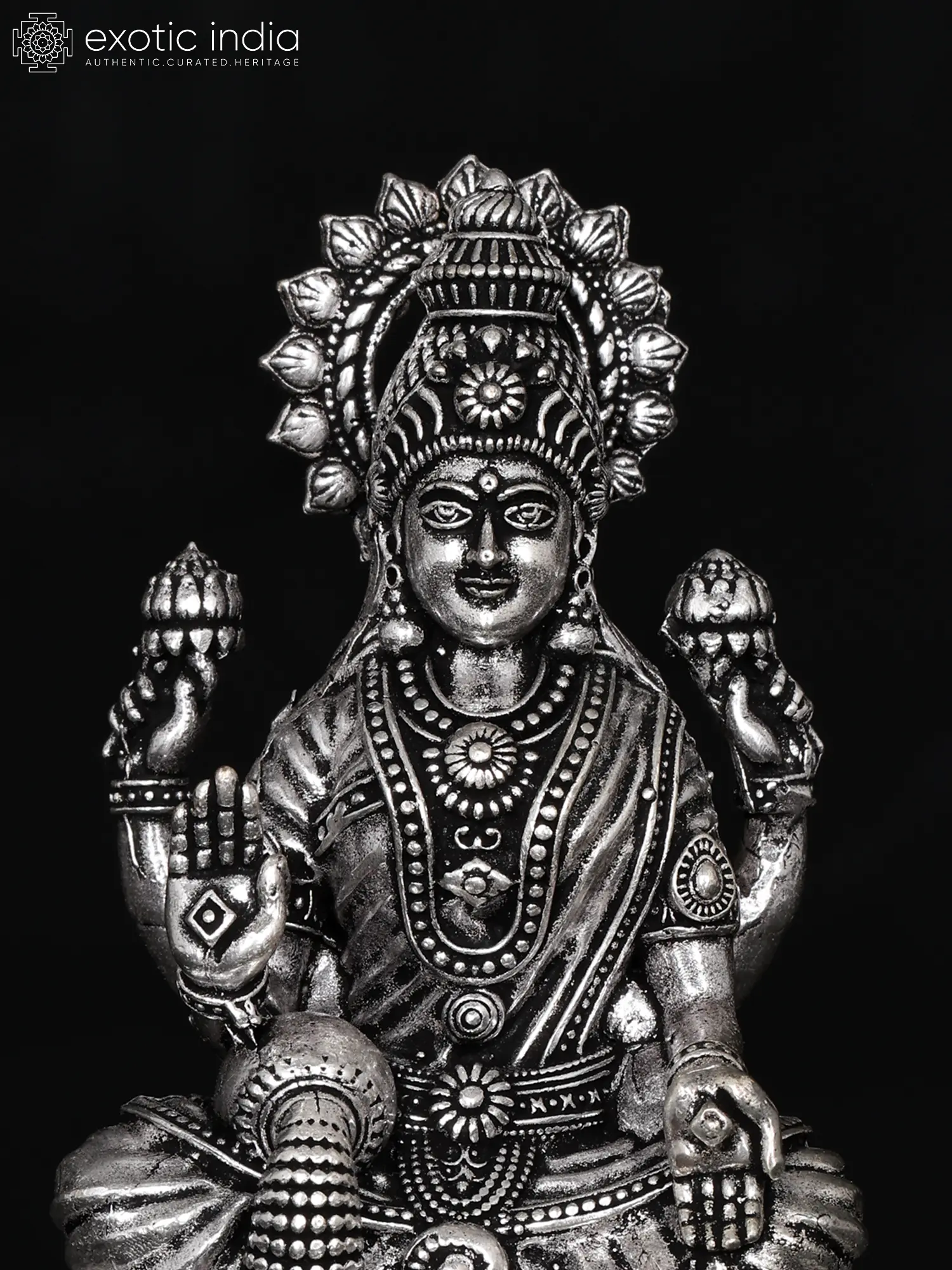 Goddess Dhana Lakshmi, the manifestation of “Mother Goddess Lakshmi”, resplendent in her divine glory, graces her ornate podium with an enchanting presence. With lotus flowers delicately cradled in her upper hands, she emanates purity, prosperity and grace. Her right hand, poised in “Ashirwad Mudra”, bestows blessings upon all who seek her favour, while her left, in “Varada Mudra”, showers the gift of abundance upon her devoted followers. Adorned in regal attire, her magnificence captivates all who lay eyes on her. She cradles the sacred pot of wealth, symbolising her boundless generosity. Crafted in brass, this statue embodies the essence of prosperity and the awe-inspiring power of Dhana Lakshmi.