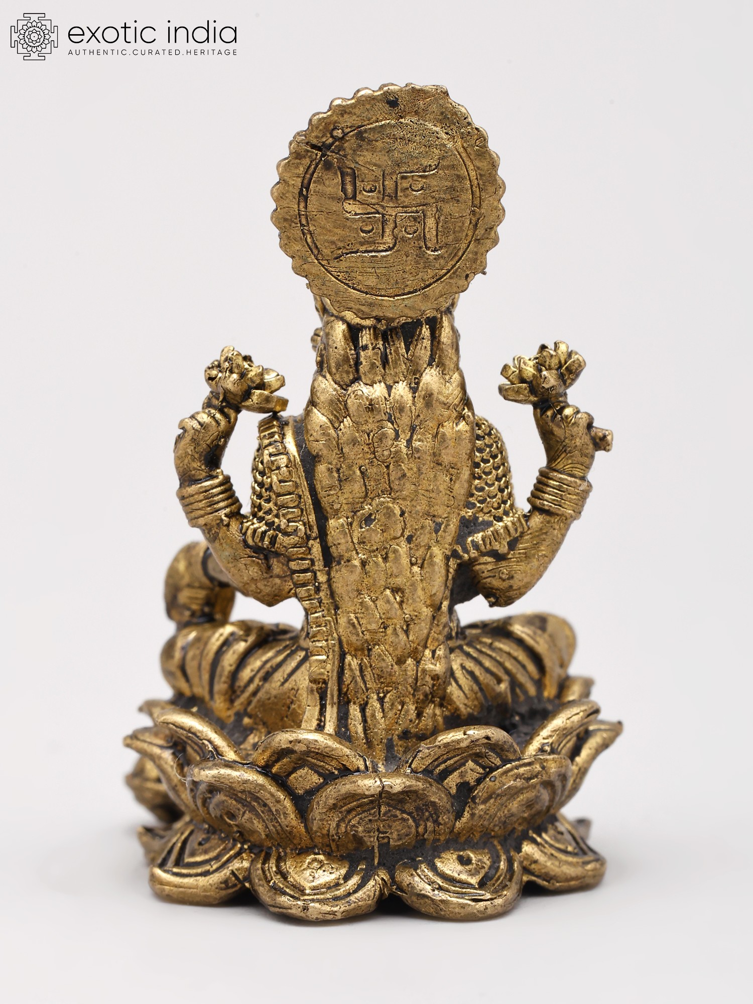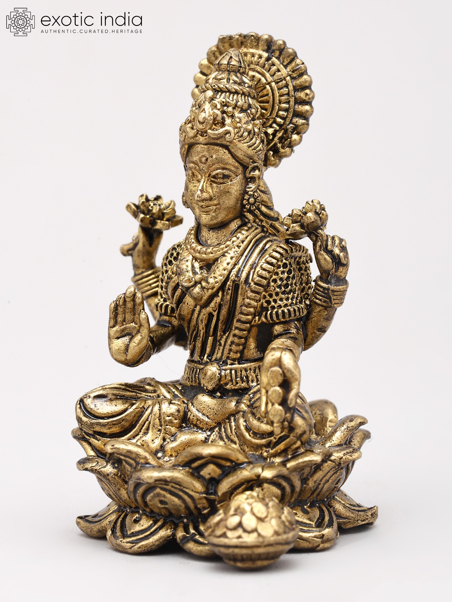 2" Small Four Armed Goddess Dhanalakshmi Seated on Lotus Throne | Brass Statue | Made in India
