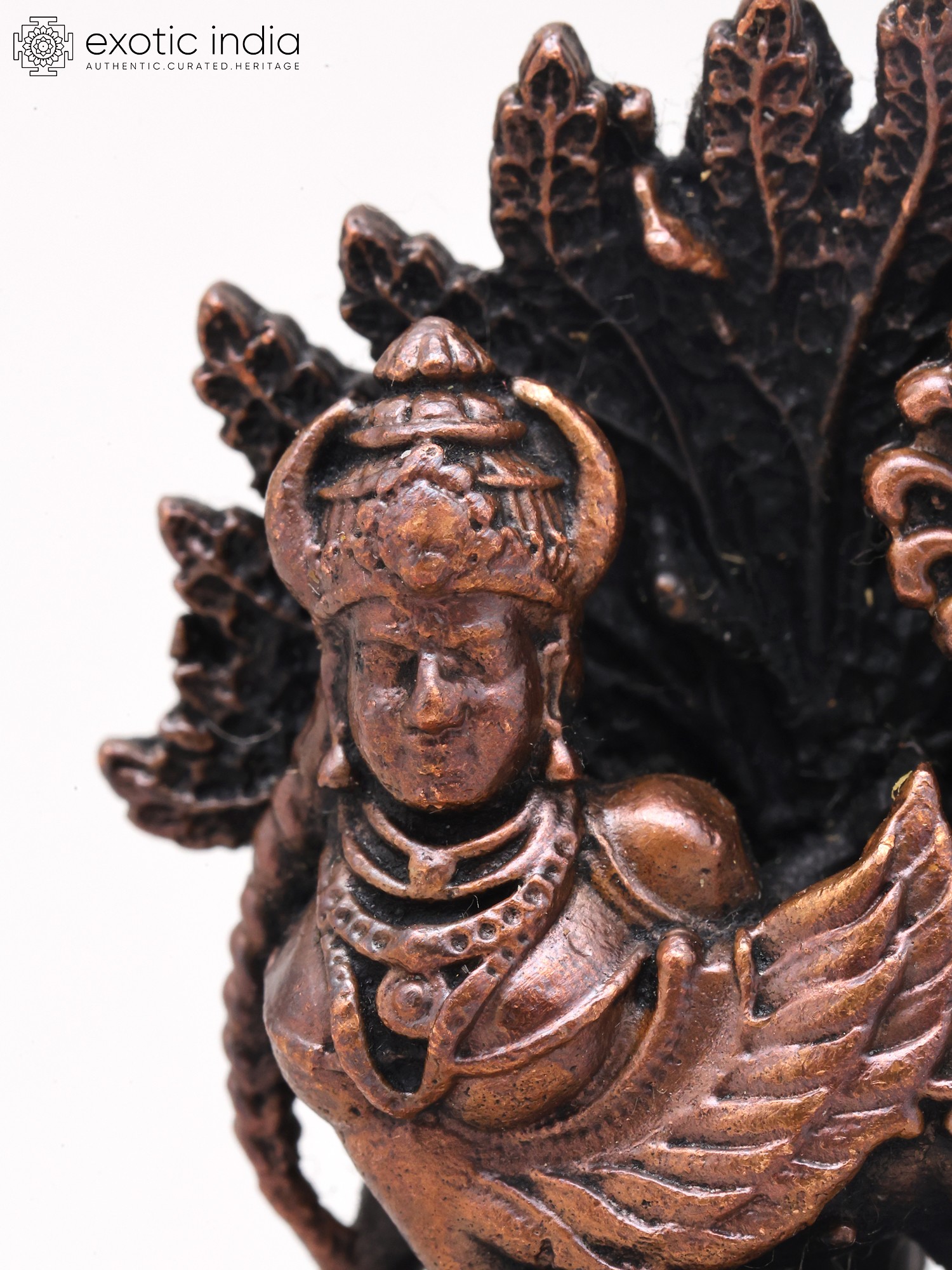 5" Small Lord Vishnu and Goddess Lakshmi Seated on Divine Vehicle Garuda | Copper Statue | Made in India