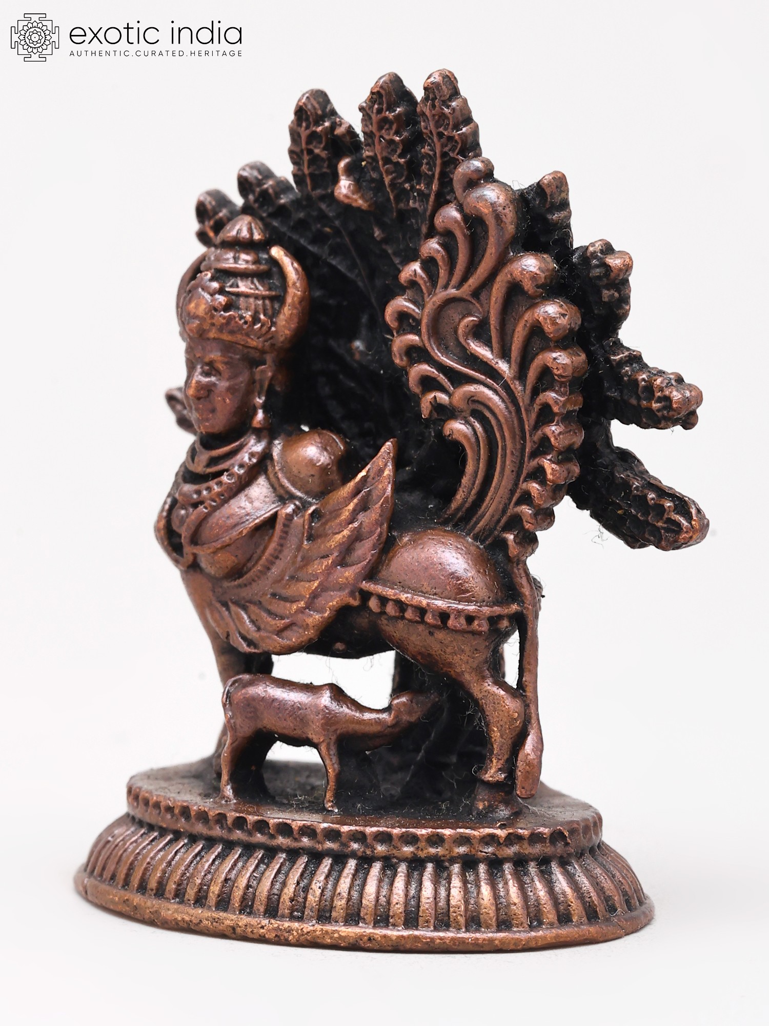 This captivating piece is meticulously handcrafted from pure copper by skilled artisans in India, employing time-honored techniques passed down through generations. Each detail, from the delicate ornamentation adorning the deity to the tender posture of the calf, is brought to life through patient and precise work. The rich patina of the copper lends an air of authenticity and ancient allure, a testament to the dedication poured into its creation.