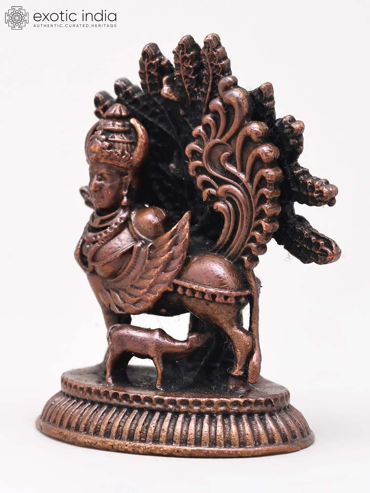 4" Small Ashtabhuja Goddess Durga with Lion | Handmade | Copper Statue | Made in India