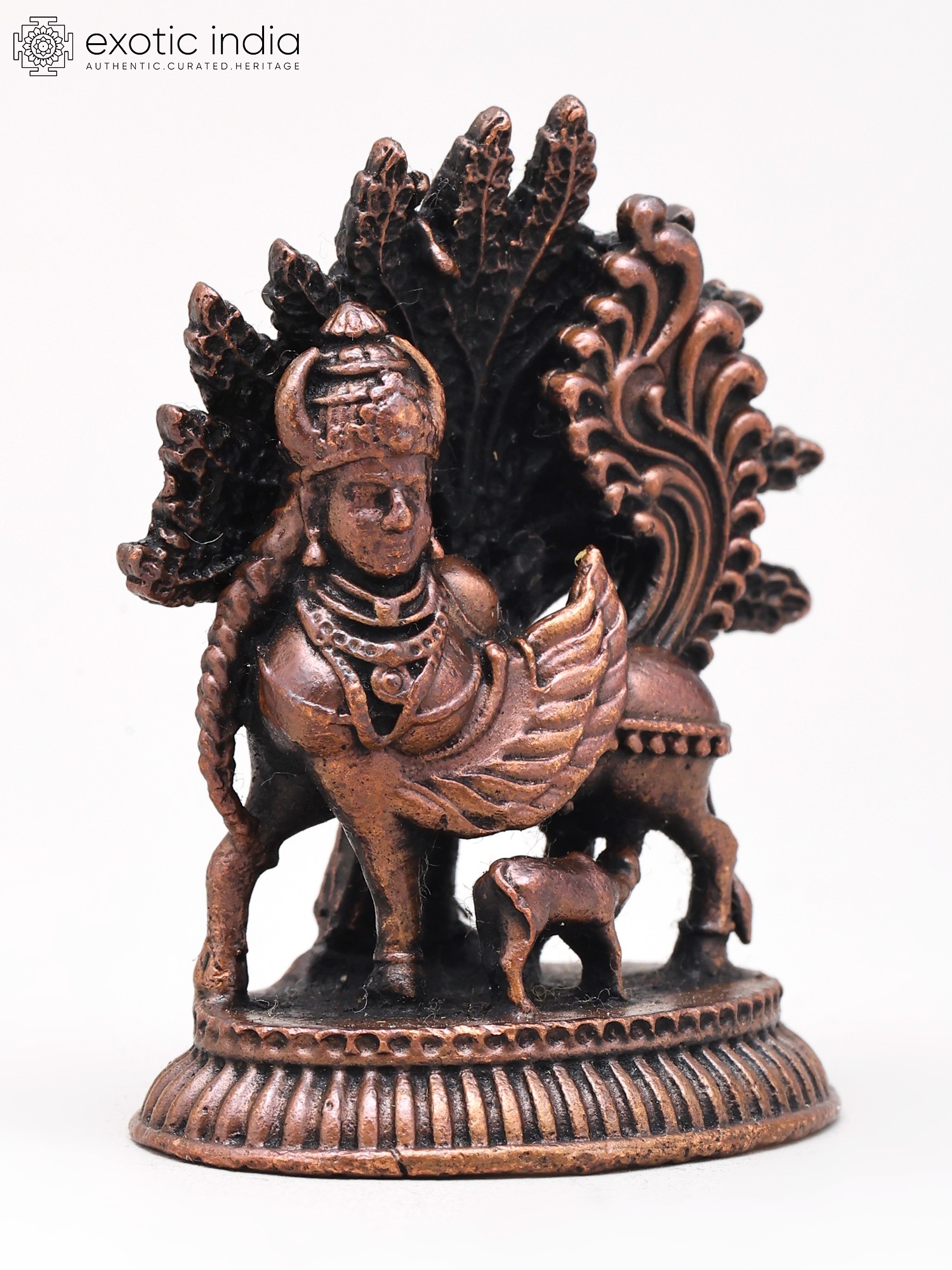 1" Small Copper Kamdhenu Cow God Statue | Handmade