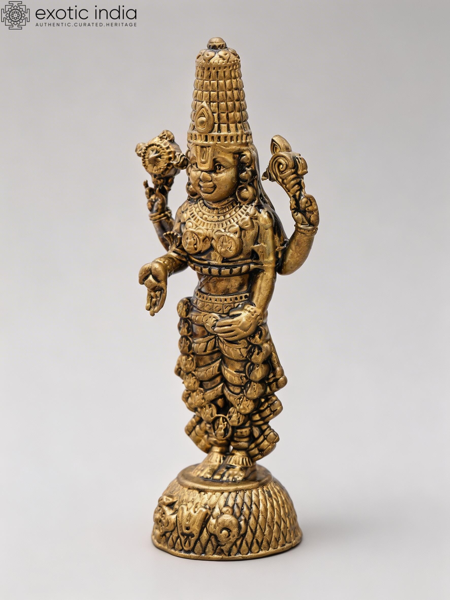 4" Small Lord Tirupati Balaji (Venkateshvara) | Copper Statue