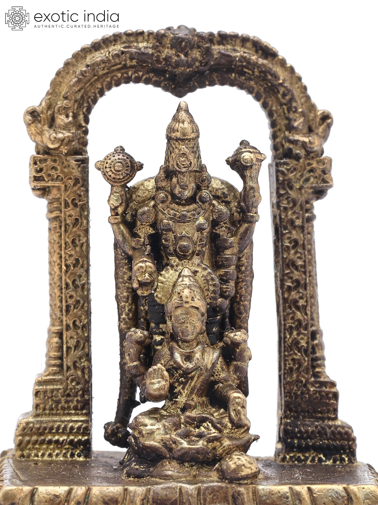 Small Lord Tirupati Balaji with Devi Lakshmi on Kirtimukha Arch | Copper Statue | Made in India