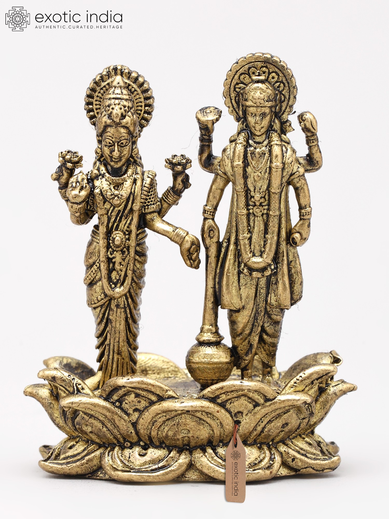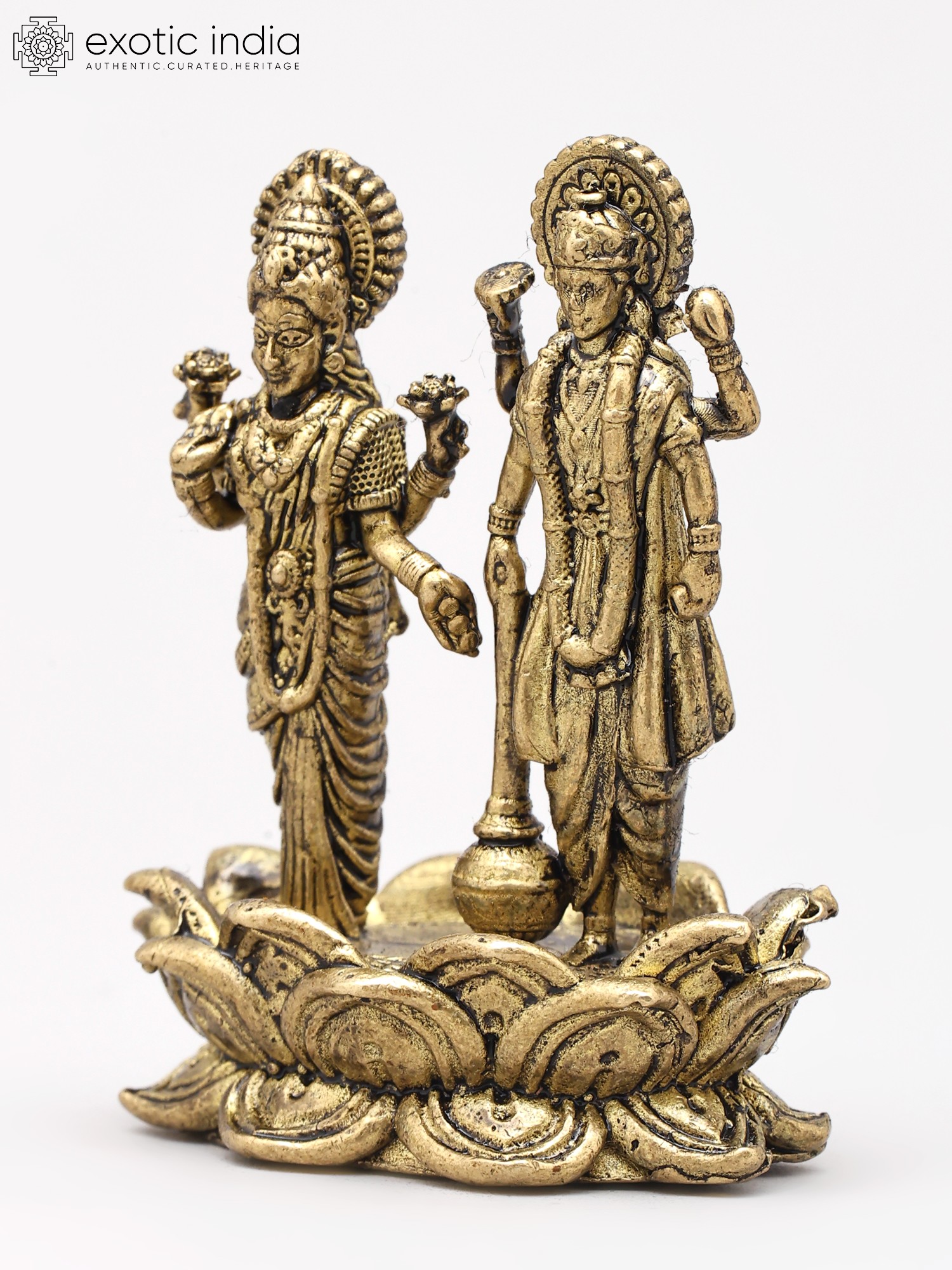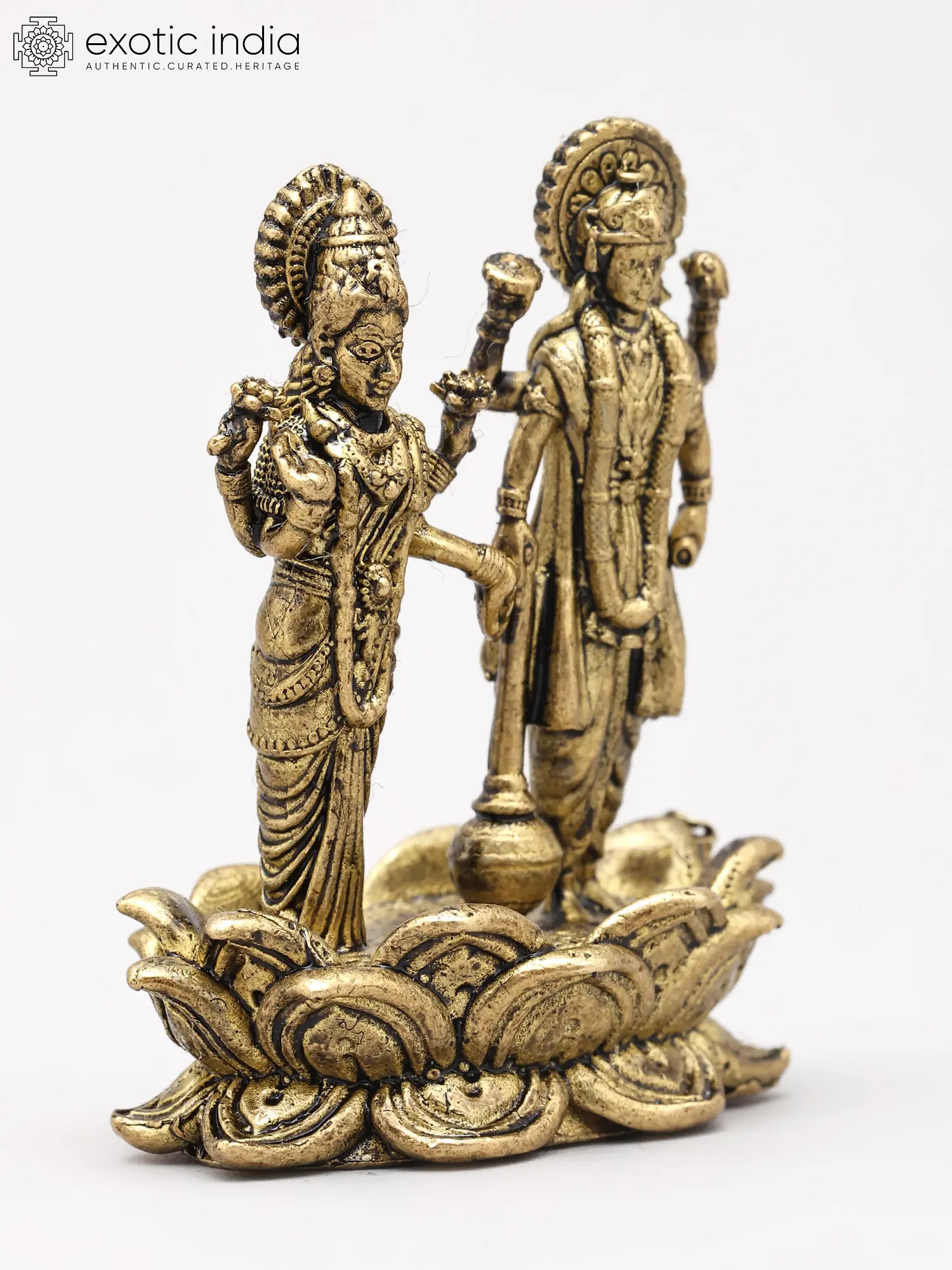 Small Lord Vishnu and Goddess Lakshmi Standing on Lotus (Lakshmi-Narayan) | Copper Statue | Made in India