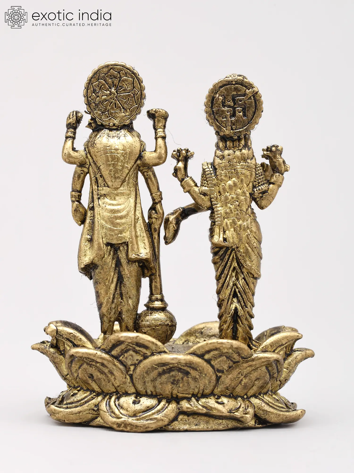 5" Small Lord Vishnu and Goddess Lakshmi Seated on Divine Vehicle Garuda | Copper Statue | Made in India