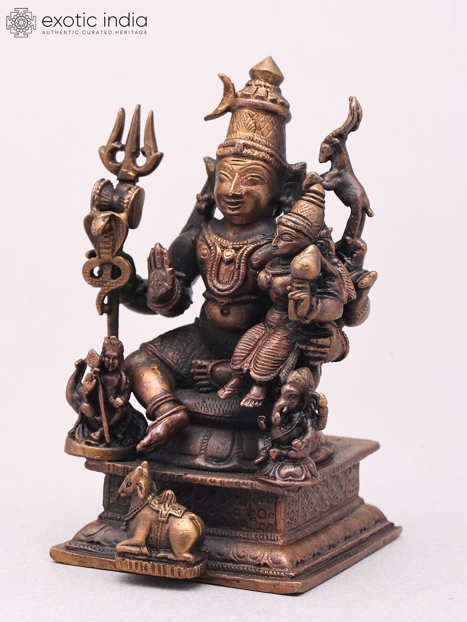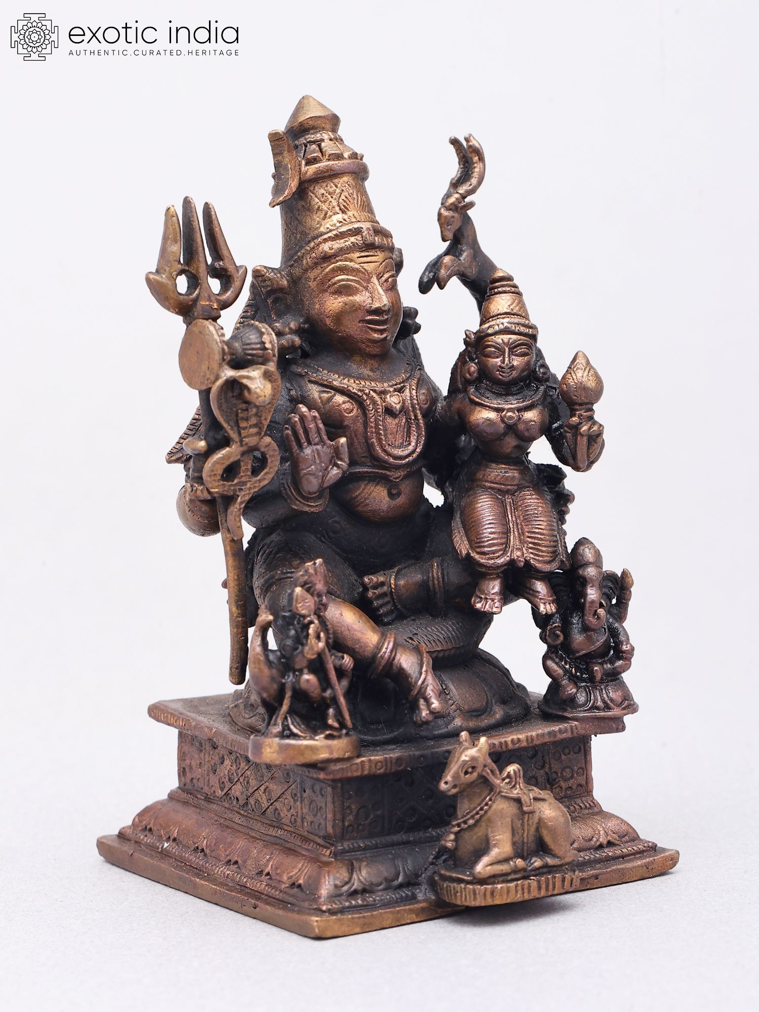 2" Small Shiva Family (Shiva Parivar) Copper Statue