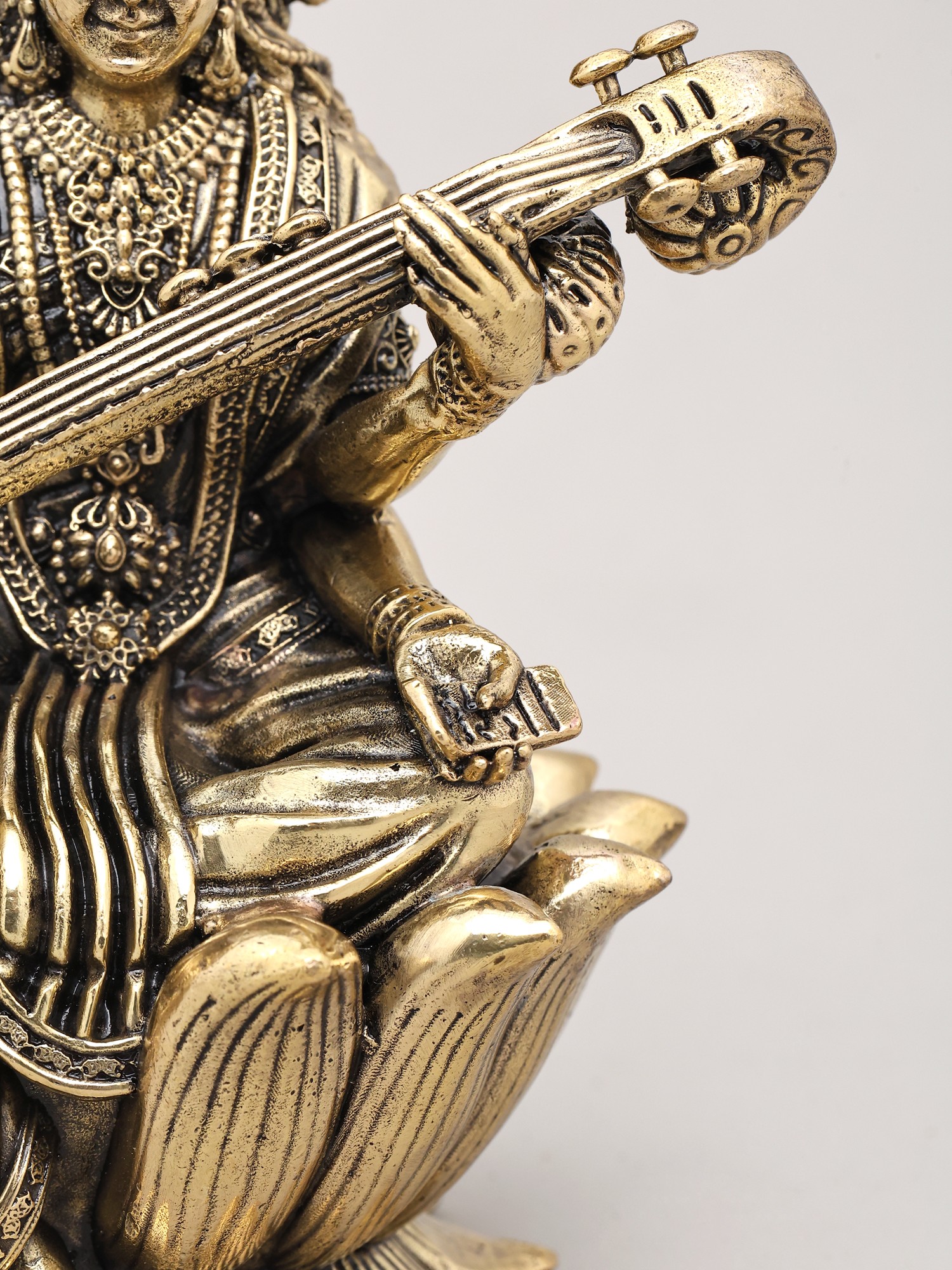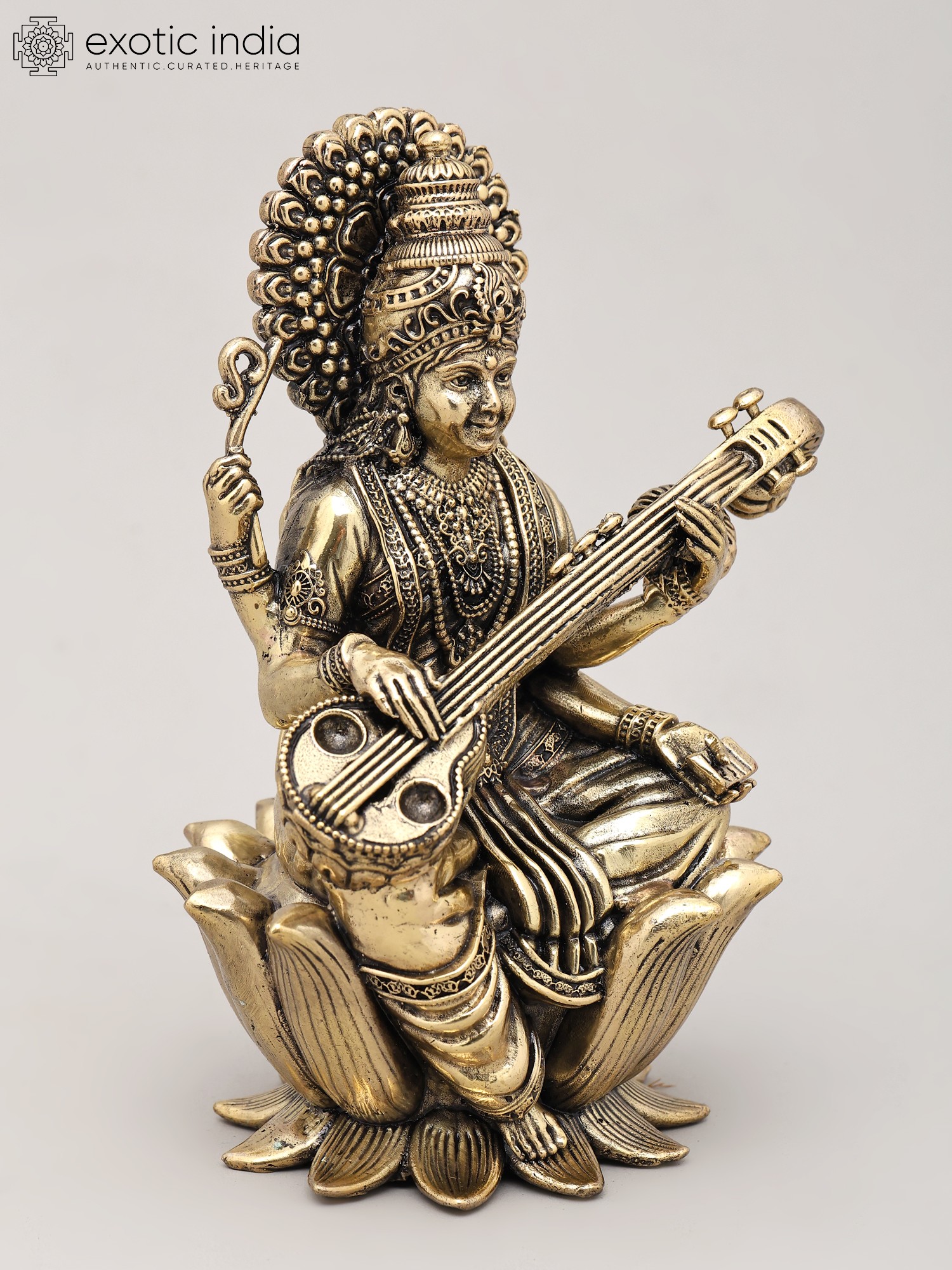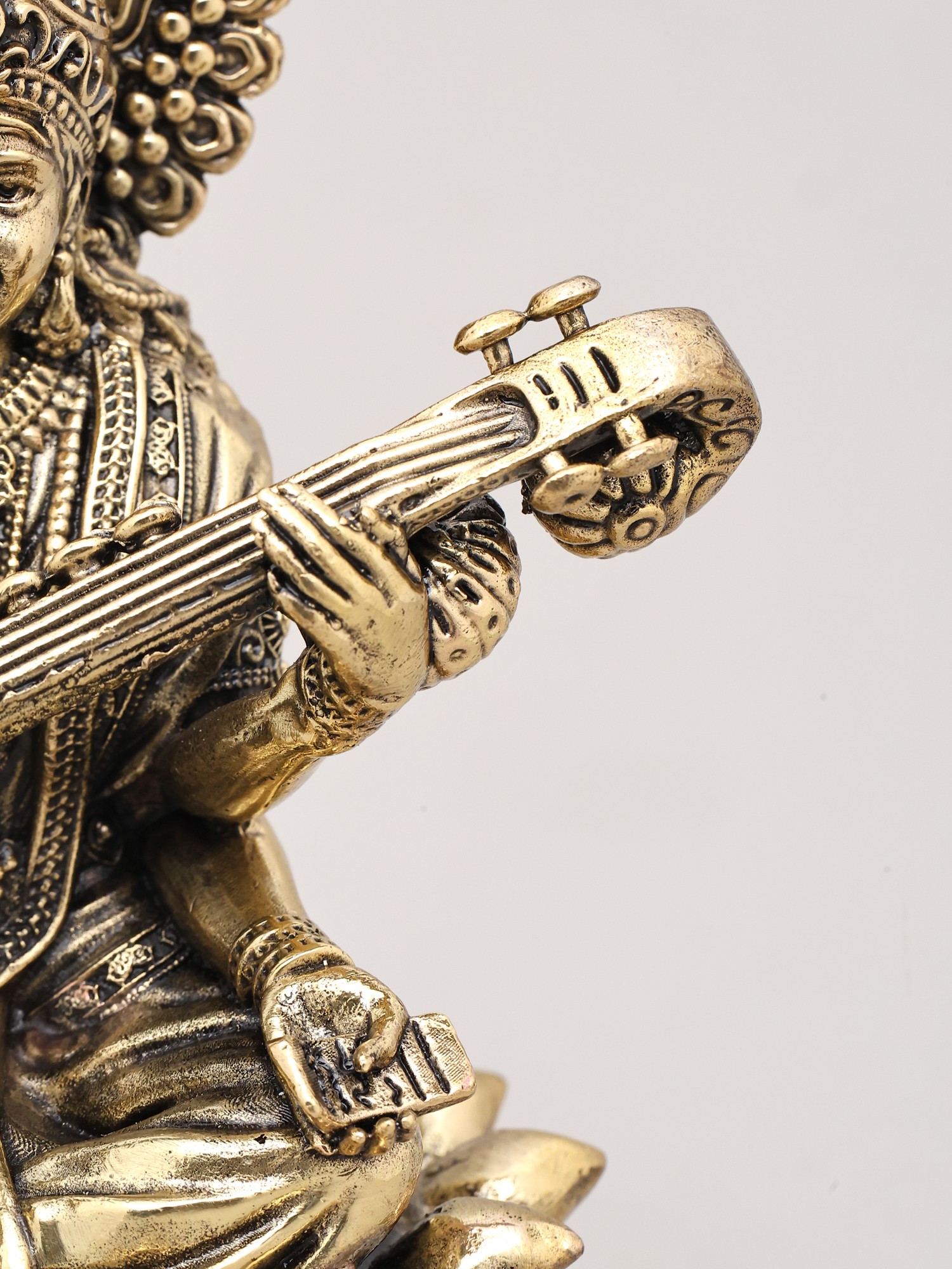 Four-Armed Superfine Saraswati Playing Veena In Brass | Handmade | Made In India