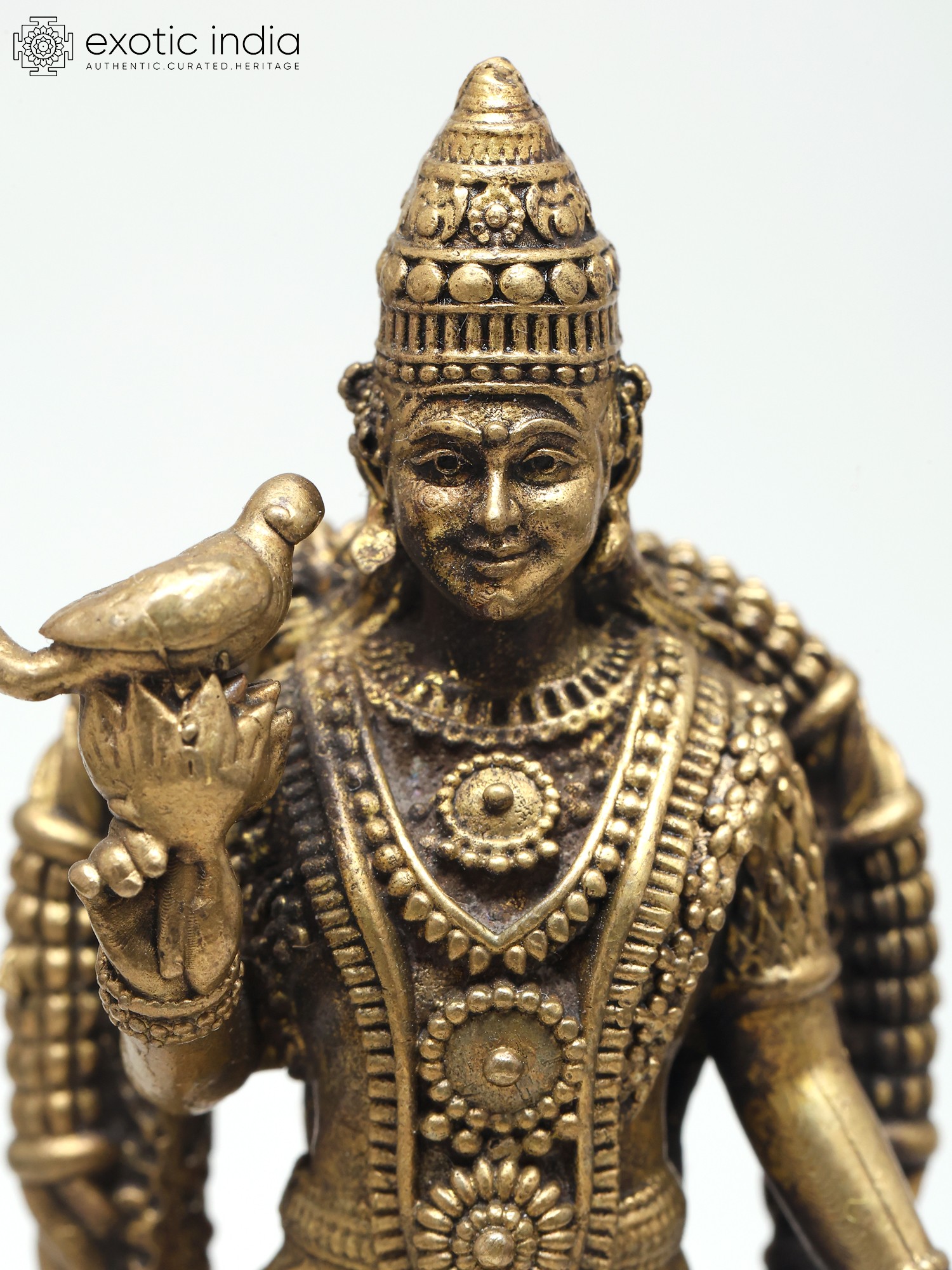 6" Small Three Headed Standing Lord Murugan (Karttikeya) | Copper Statue