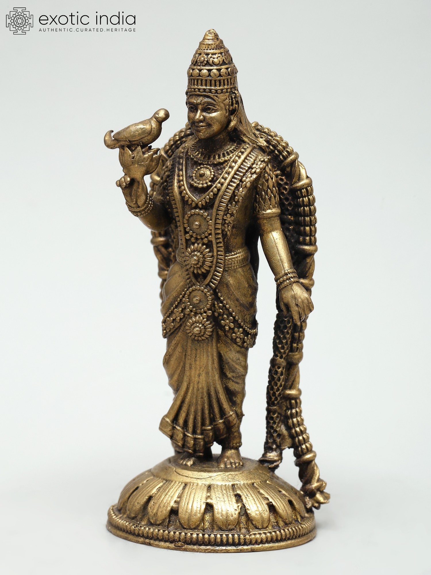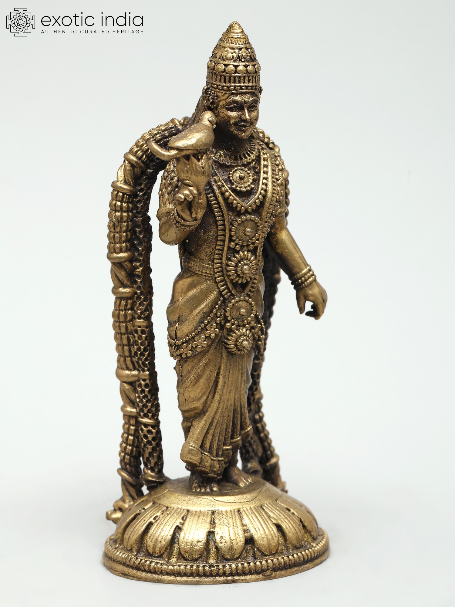3" Small Brass Statue of Lord Krishna with Flute and Cow | Made In India