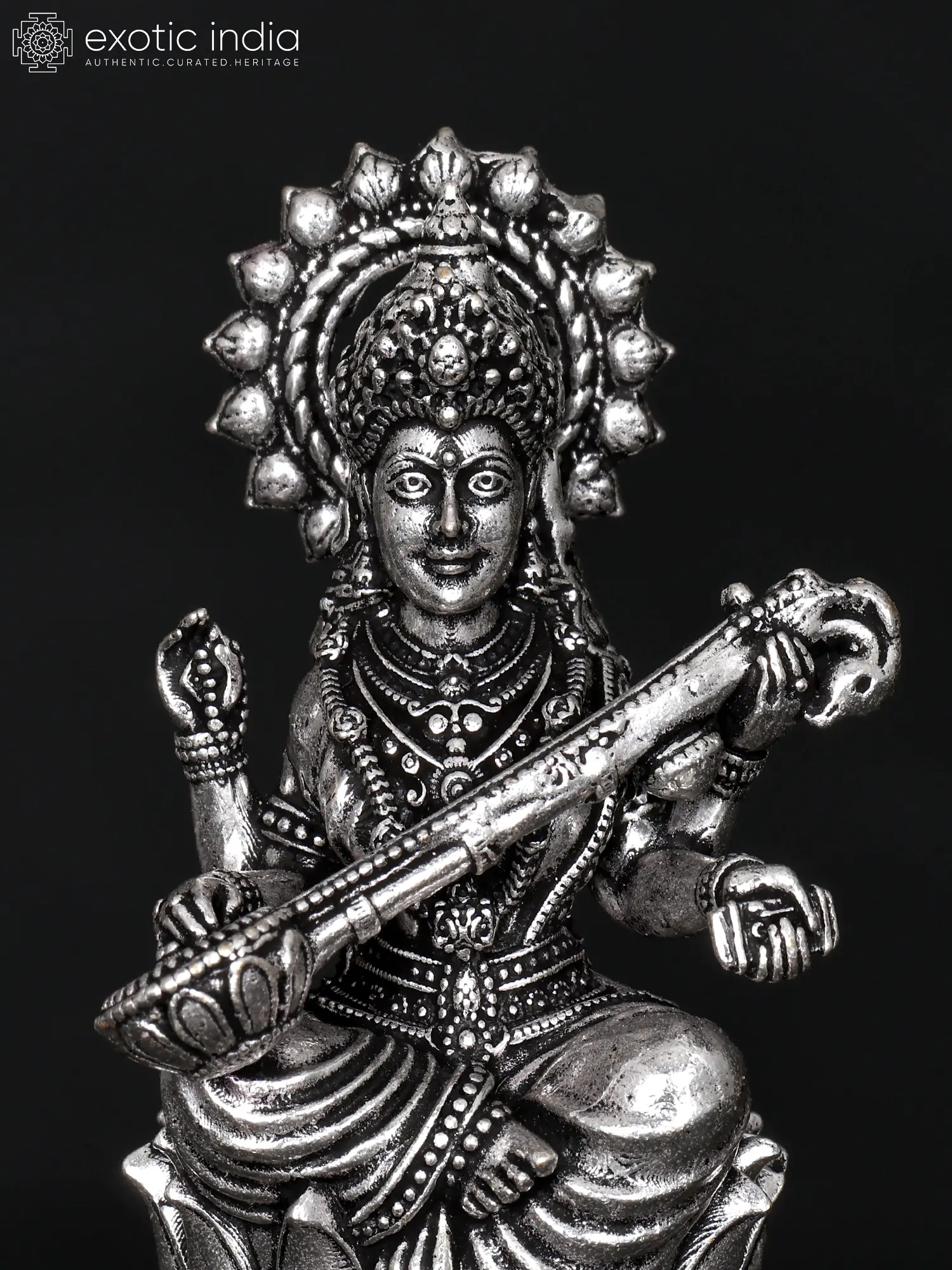 With ethereal hands skillfully playing the “Veena”, She, “revered as Swaratmika (the One who is at soul of Music)”, orchestrates a symphony that transcends mortal realms. Adorned with sacred prayer beads and cradling holy scriptures, Saraswati imparts wisdom and knowledge.