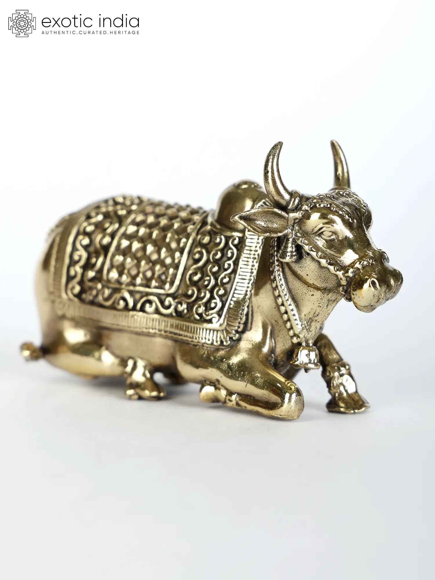 This brass statue serves as a beautiful piece of art and also as a reminder of the virtues of patience, loyalty, and unconditional devotion. For devotees and admirers alike, Nandi's figure inspires them to embody these qualities in their own spiritual journeys.